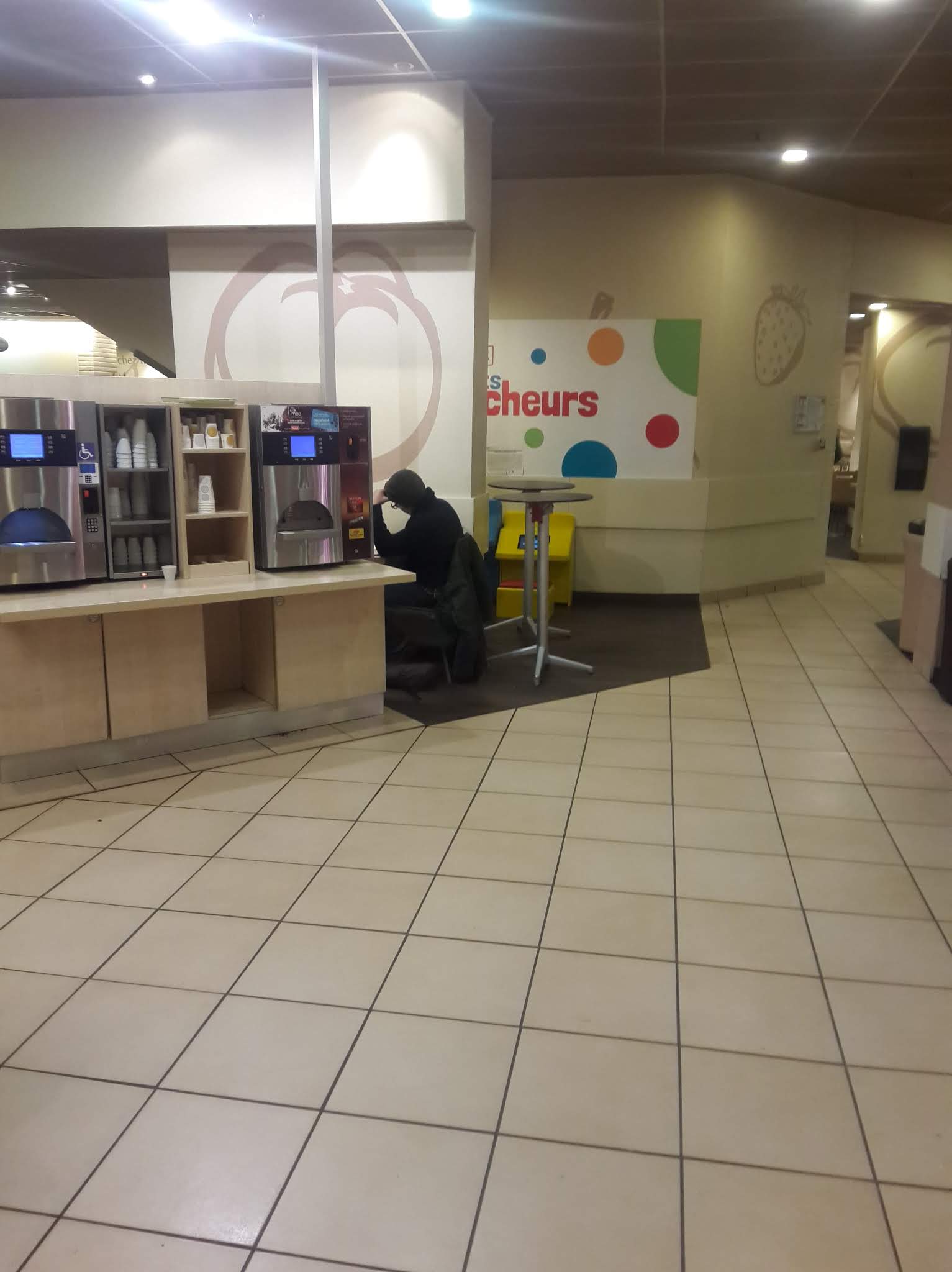 À fuir! Endroit très sombre, il s'agit d'un restaurant subterranée. Aucune fenêtre n'est très mal organisée. C'est vraiment horrible et dangereux. Moi j'aime beaucoup aller au Flunch, mais celui-ci il est vraiment moche. Je ne recommande pas. Et en plus, j'ai pris un jus multifruits et il était périmé. C'est dégueulasse.