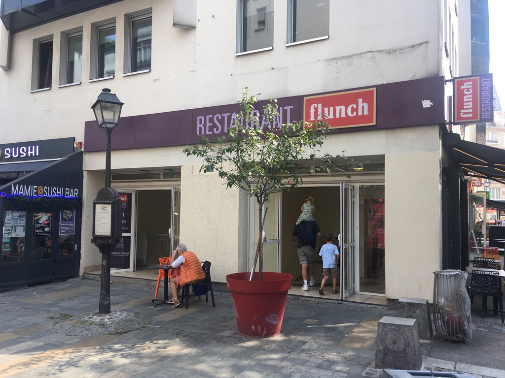 Flunch classique situé en sous-sol et pratiquant des prix toujours intéressant. Plat principal entre 7,5€ et 10€ (avec une bonne portion notamment le demi-poulet à 9,95€) et accompagnements (pâtes et riz, légumes...) à volonté. Bon choix de salad bar, d’entrées, de desserts et de boissons (alcoolisées ou non). La salle n’est pas très lumineuse mais spacieuse. La clientèle est populaire et le service souvent plein.