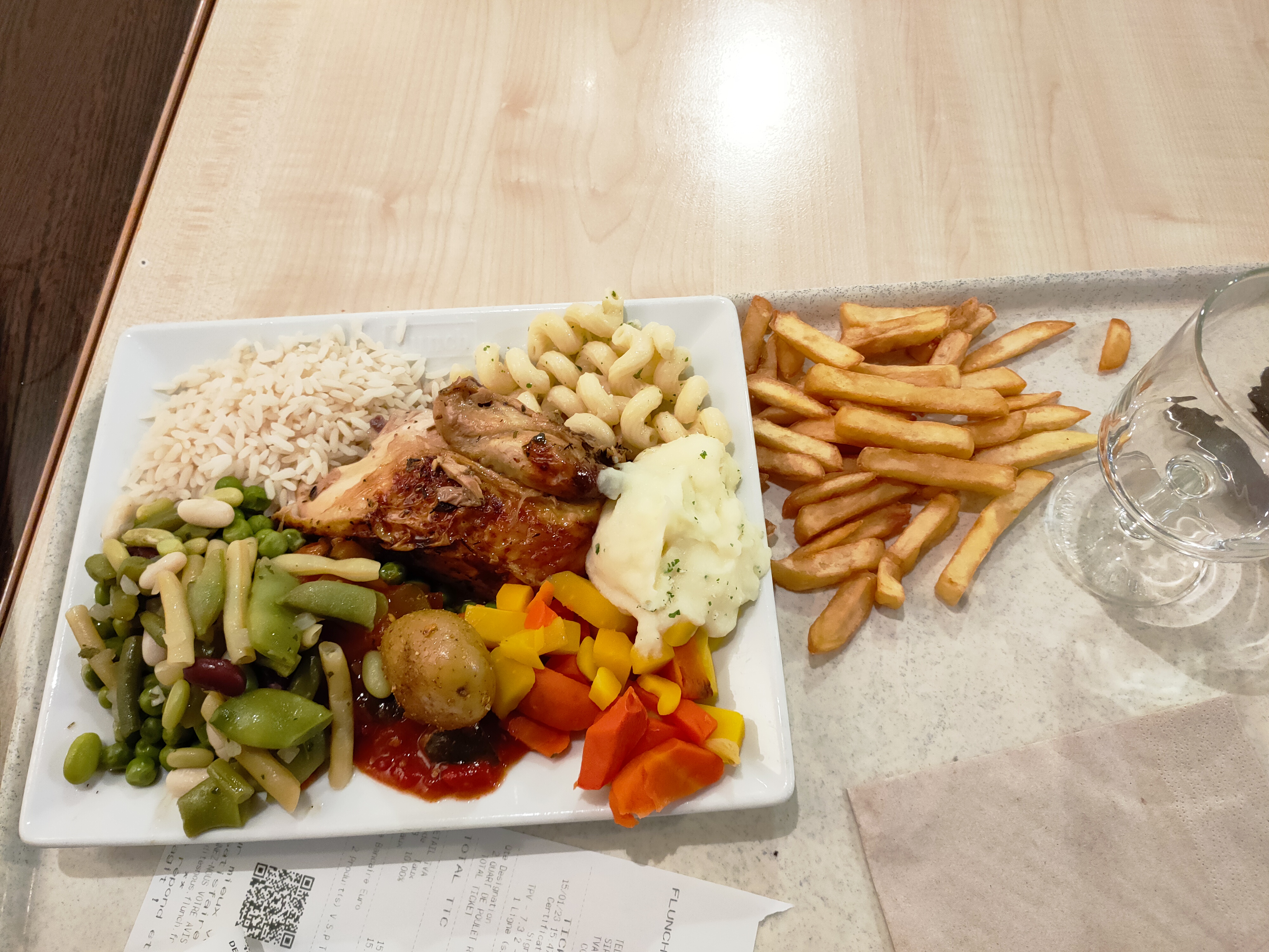 Service rapide et efficace ! Pas chère, riz / pâte / purée / pomme de terre / légume à volonté ! Comparé à ce qu'on trouve dans les restaurants / bar vous mangez très bien !