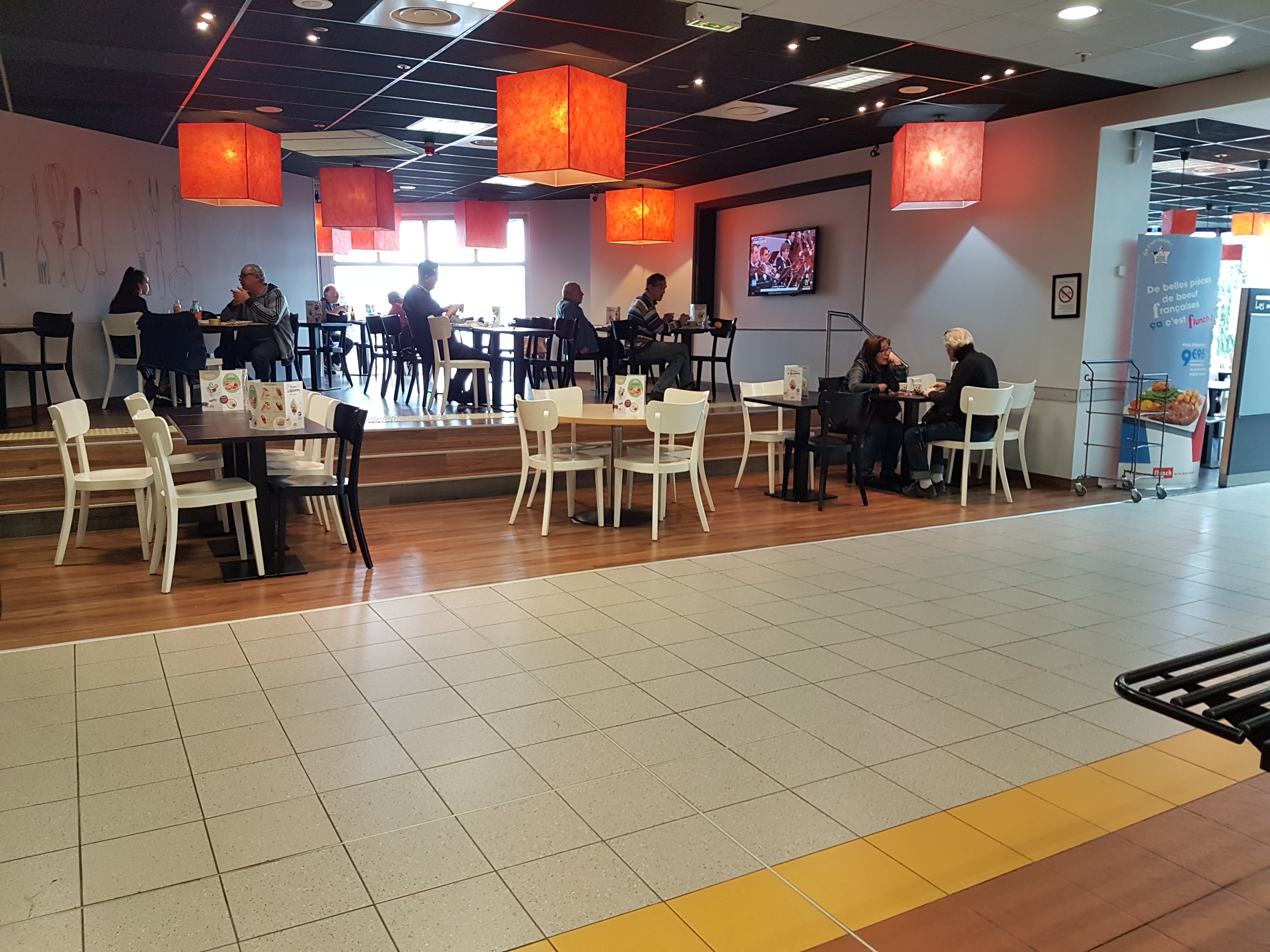Très déçue. Les frites étaient froides. On m'oblige à manger ma viande très cuite (plus le droit au saignant selon une législation) et quand on a des soucis à l'estomac car pas le choix, c'est jeter ton plat à la poubelle car en plus on ne te dit rien à ce sujet lors de l'encaissement. Ensuite, la tarte était molle, dégoulinante et sèche sans doute qui date de plusieurs jours. En gros, j'ai rien manger mon mari et ma fille non plus. Une perte d'argent. Si vous aimez flancher privilégier Auchan porte d'Espagne. A bon entendeur ! Ps: dame mal aimable au grill !