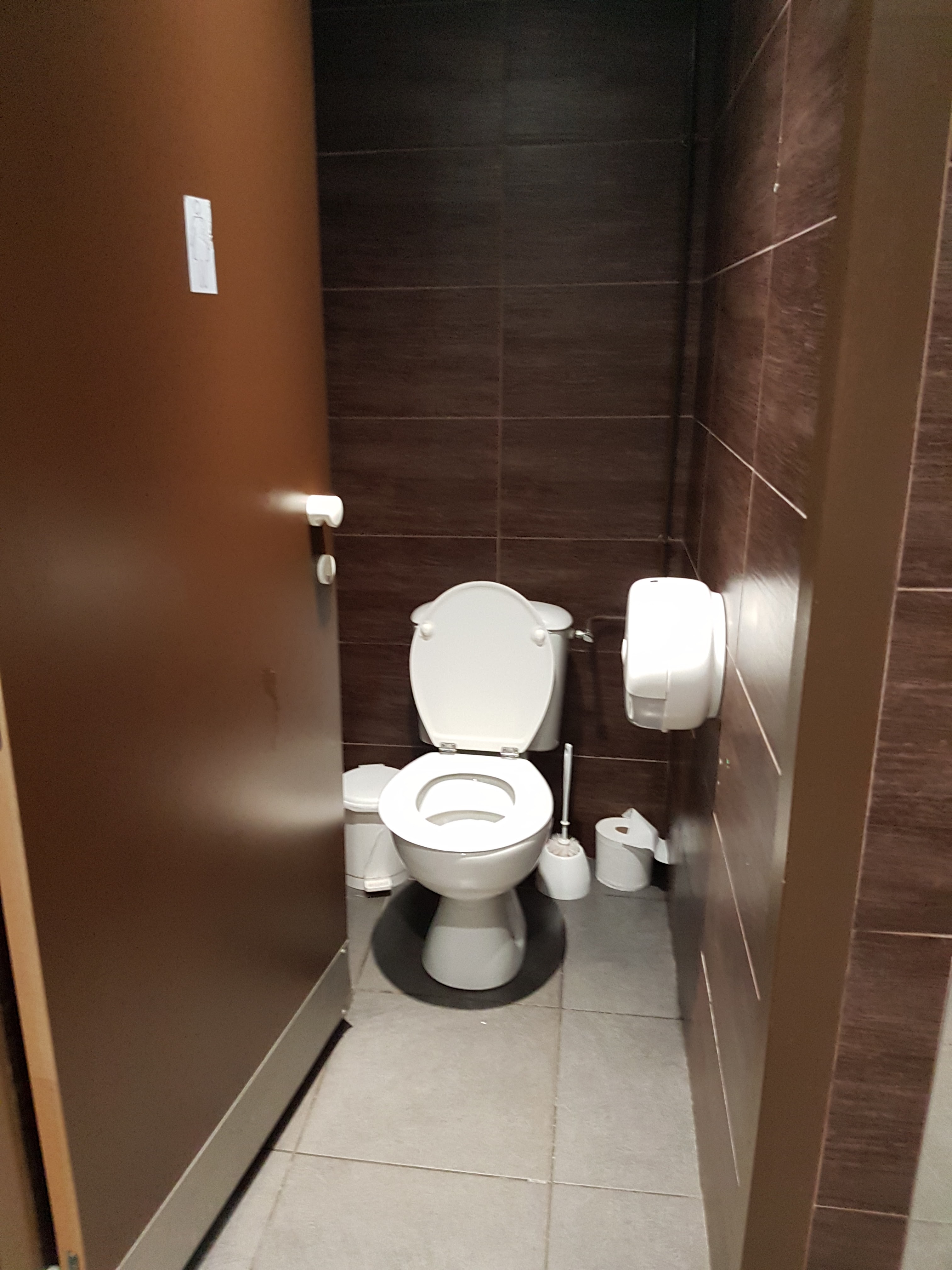 Qu'est ce que je fous là ? Le personnel fait de son mieux, mais est a la ramasse complet. Les pose plateaux sont toujours pleins, le sol est sale. Les toilettes ne ferment pas, c'est encore plus sale qu'une aire d'autoroute. Je n'en croyais pas mes yeux.