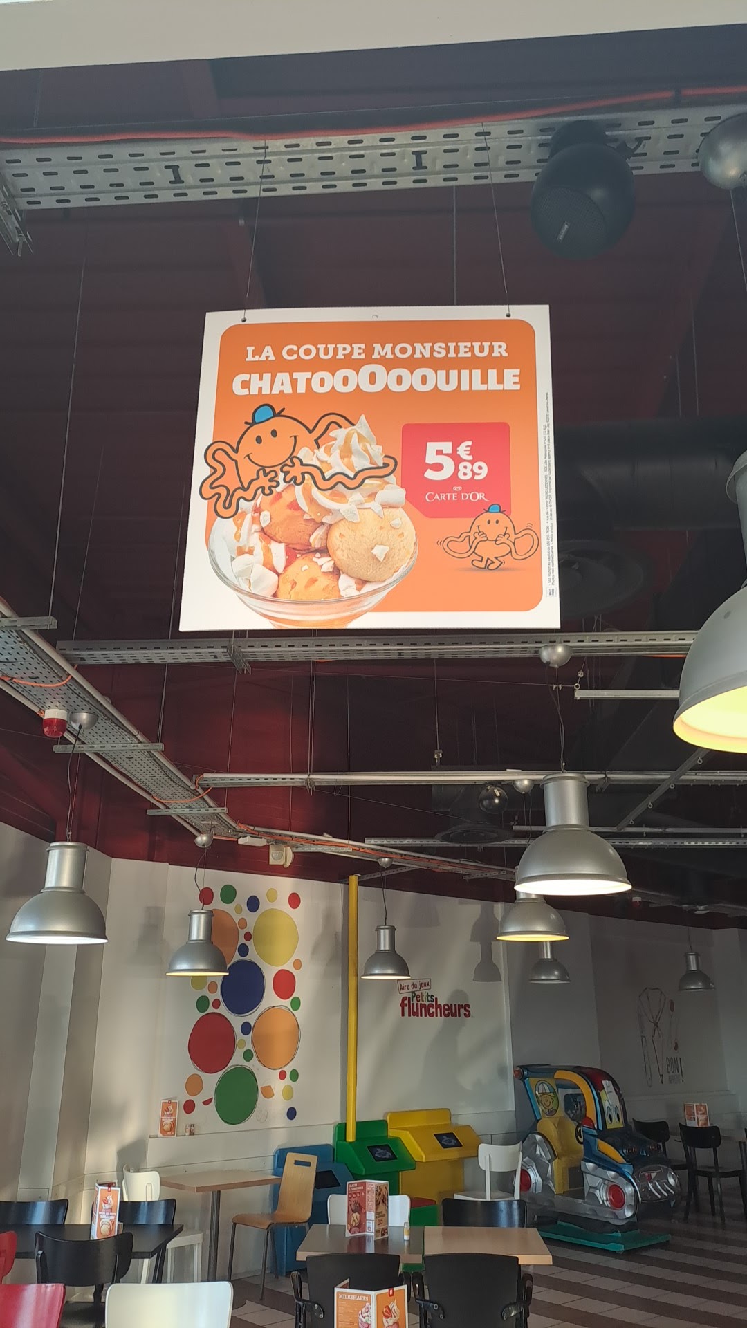 Très déçue d y avoir emmener ma niece .Pas de choix .vaisselle sale. Puree de l eau contrairement à celui d auchan . Table pas propre non plus et personnel pas agreable .je vais rester fidèle à celui d auchan