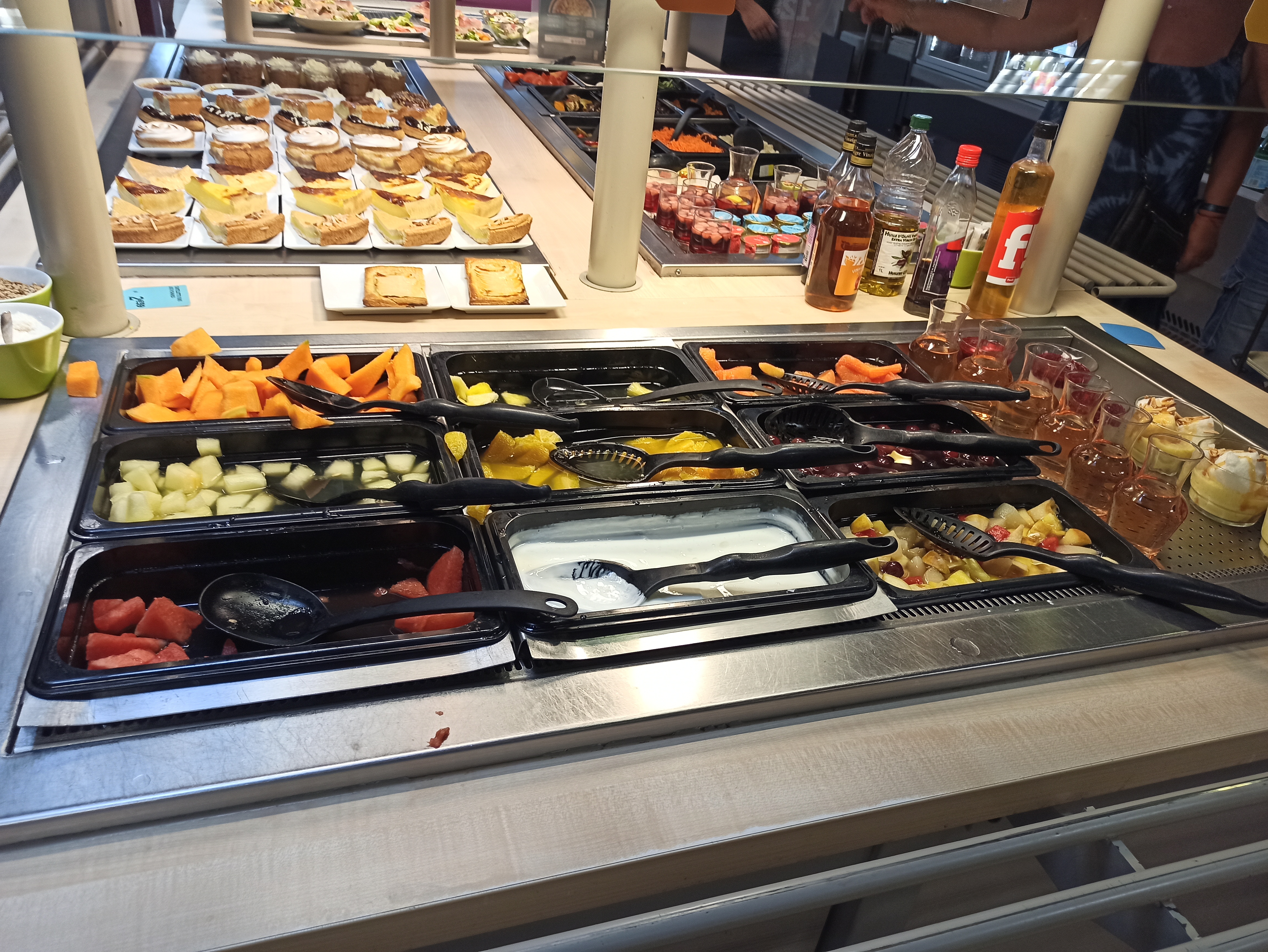 Le personnel est vraiment sympathique,grand merci à la caissière pour son accueil. En entré j'ai pris du saumon et du thon. Le thon n'avais m'as trop de goût mais j'ai rajouté un peu de mayonnaise et le saumon est très bon. Comme plat chaud j'ai pris des pâte à la crème sa ne vaut pas les bonnes pâtes italienne mais sa passe. Pour le dessert j'ai pris des fruit il n'étais pas super bon. Une bonne expérience je reviendrai 👍