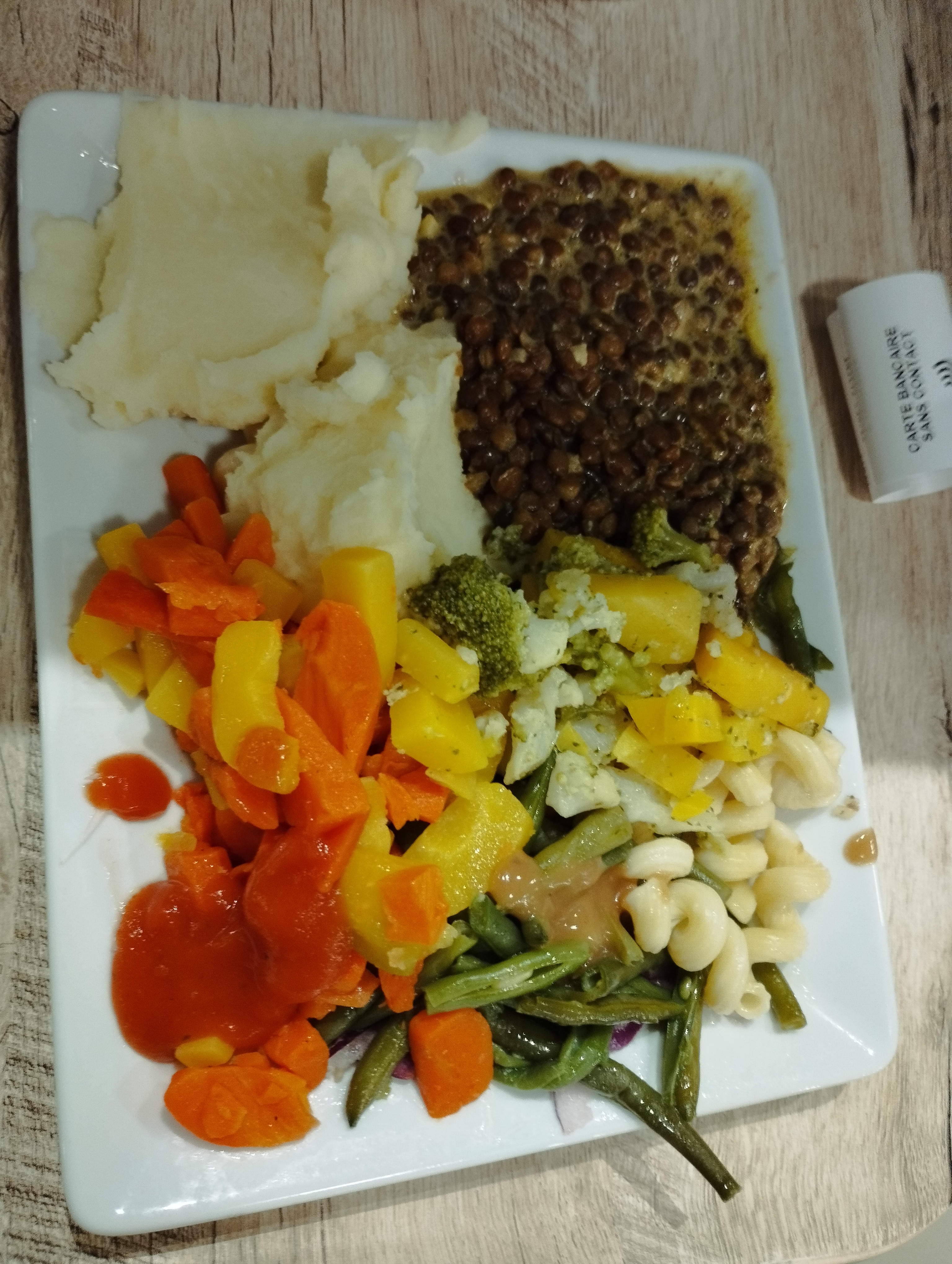 Cela faisait longtemps que je n'y avais pas été. Modernité là. Choix pas mal . En revanche LEGUMES a volonté.... Riz pomme de terre frites pâtes Ratatouille épinards.. Et même pas d haricots vers ou petits pois carottes... Plutôt garnitures.....