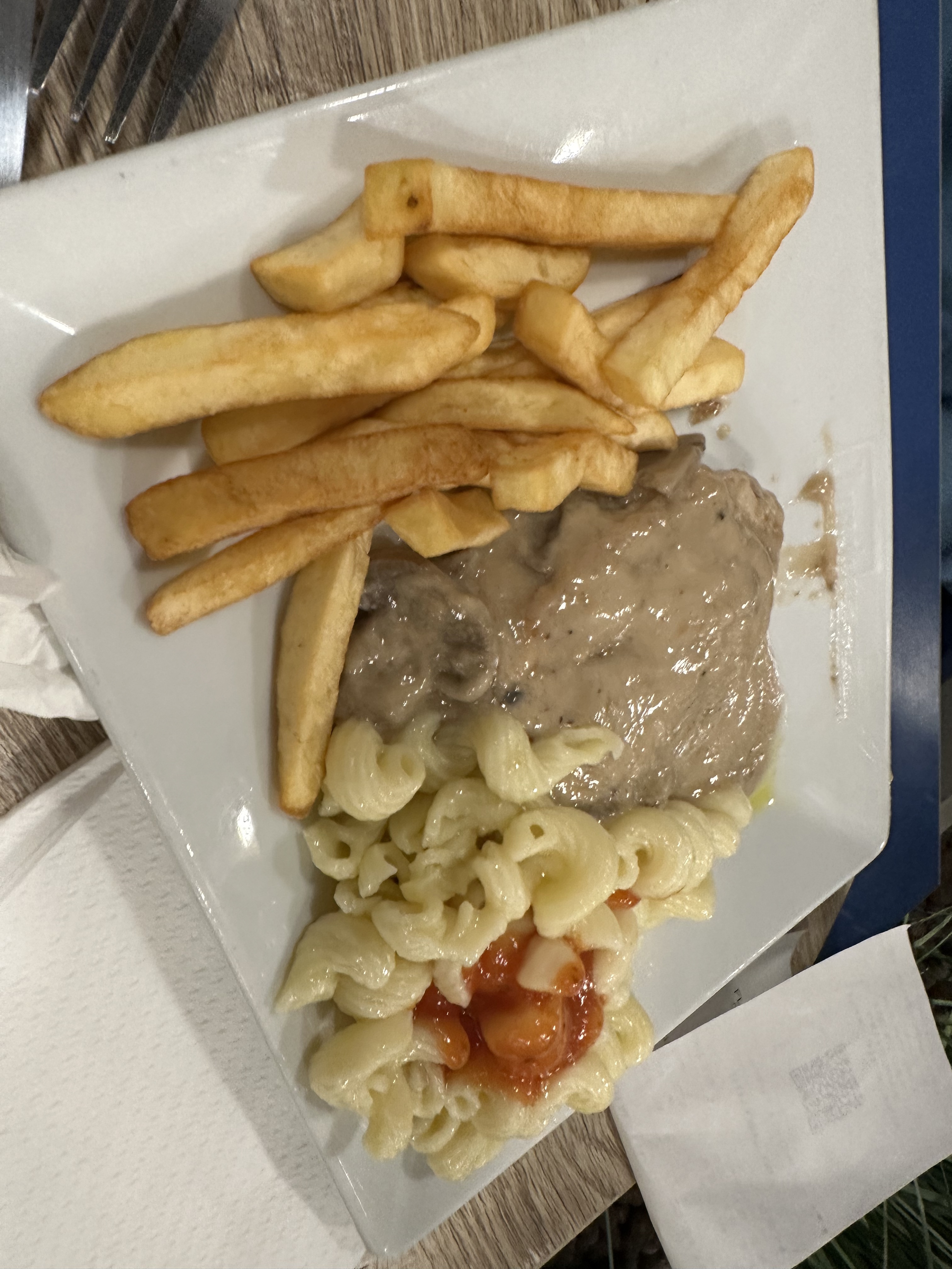 Poulet est trop sec...mais mangeable ambiance et plats comme à la cantine. Néanmoins c'est mieux que du fast food.