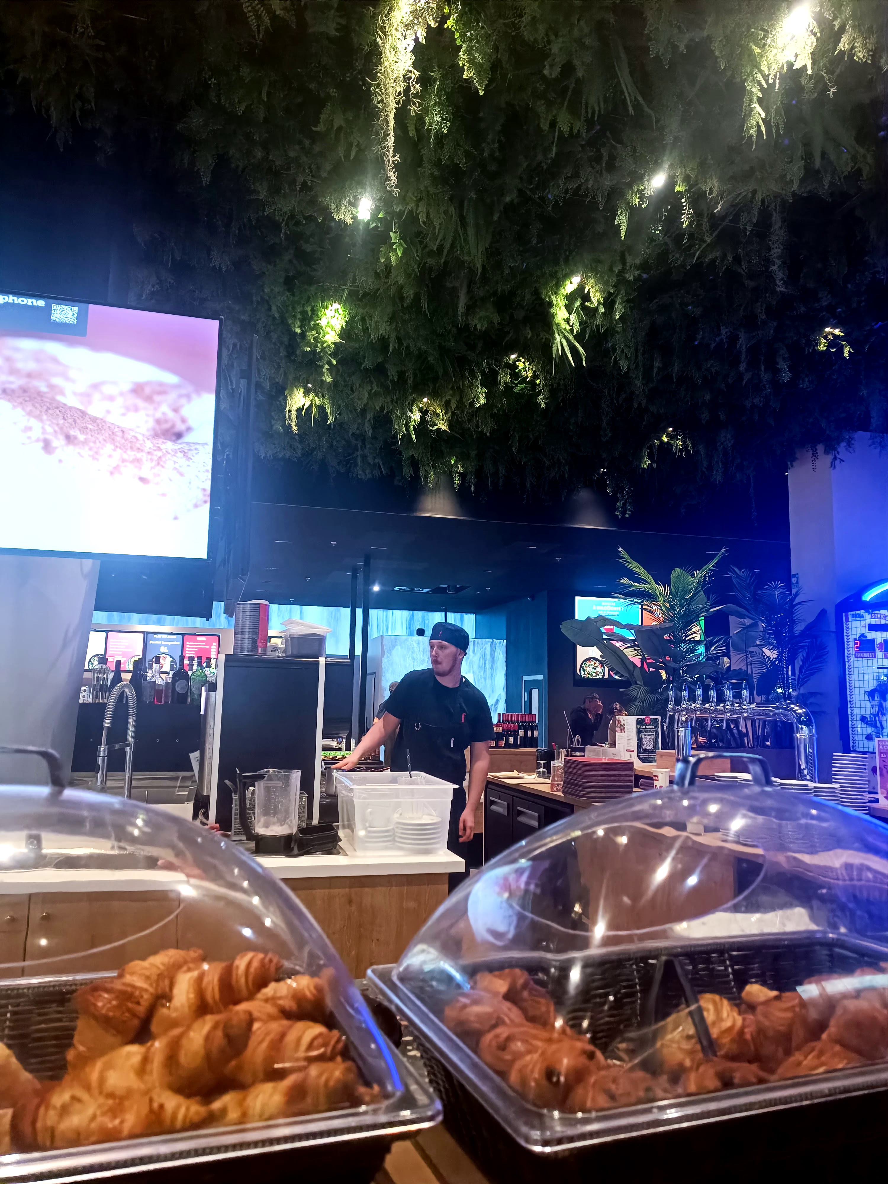 Belle déco!! Grand choix de plat. Par contre les tables pour 7 il faut s’accrocher, menu enfant pas de pain pour hamburger, pizza pas de Gants pour la préparer, la viande vous demander saignant vous avez du à point et il faut se déplacé car biper hs mais personne vous le dit. Pas de courgette pas de gratin des légumes comme à la cantine pas appétissant. Dessert 2 coupes de glace 30 minutes. Dispute entre adultes, des enfants qui vous envoie les chaises dans le dos pas d’agent de sécurité. Très déçu, je pense pas que l’on réessaye.