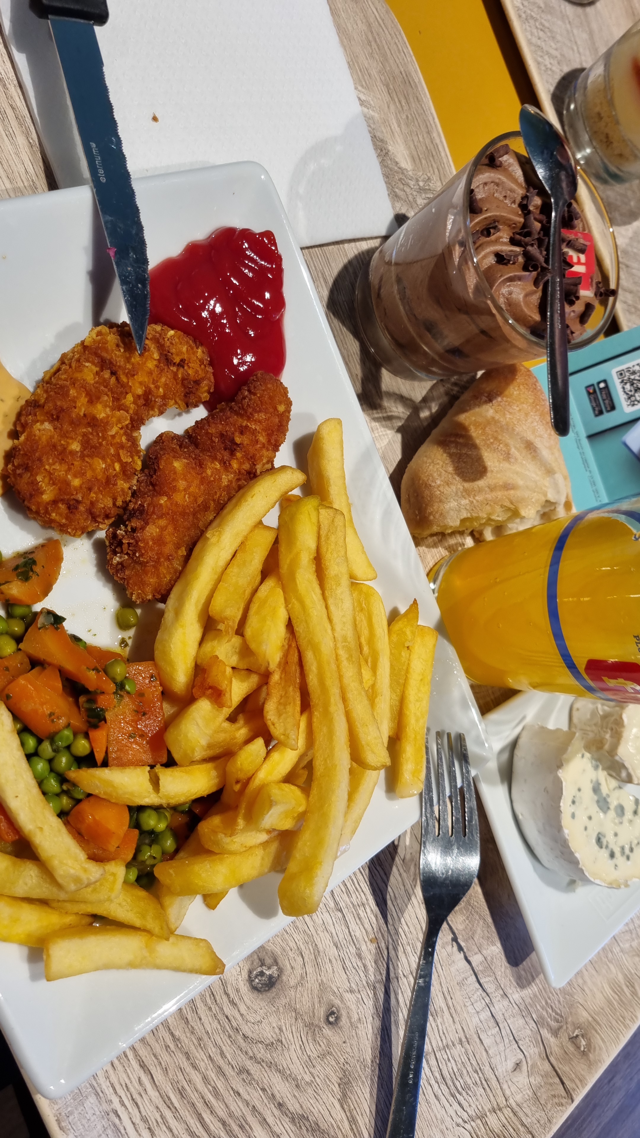 Après une journée de trajet nous décidons de nous arrêter manger chez Flunch, 7,99€ les deux petits tenders froids dans l’assiette …… à ce tarif on aurait dû rentrer se préparer quelque chose chez nous La photo parle d’elle-même, la quantité est ridicule je me suis demandé si il ne s’agissait pas d’un menu enfant…… pour un total de 30,31€, au prix du coût de la vie actuelle je trouve ça honteux de se faire berner comme ça par une enseigne familiale