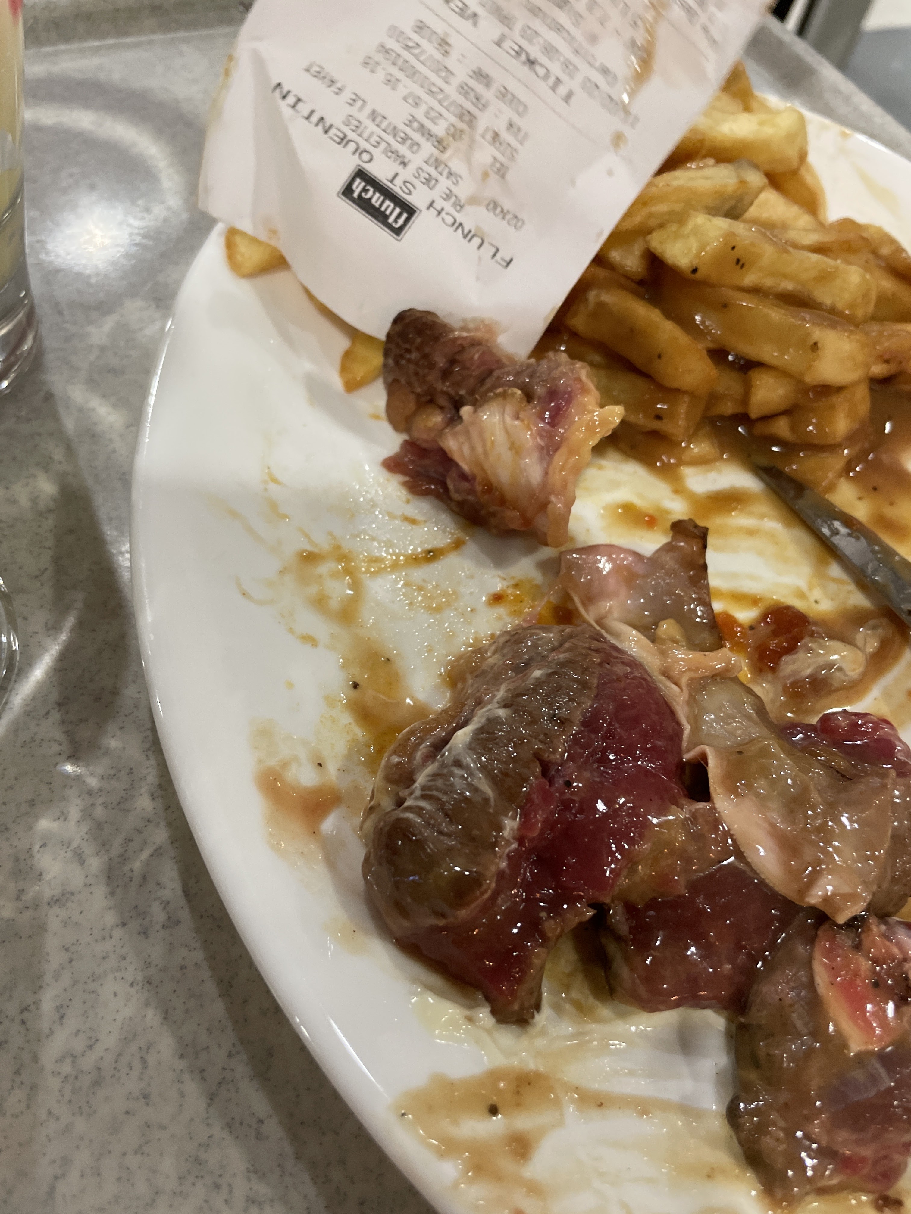 Déçu du plat car dès qu on passe en caisse, le plat est préparé, pour moi c était une andouillette et comme j avais pris une entrée, quand je l ai récupéré, elle n était pas cuite à ma convenance, avait déjà de la sauce dessus et était tiède. Je regrette le temps où on vous préparé votre plat devant vous.