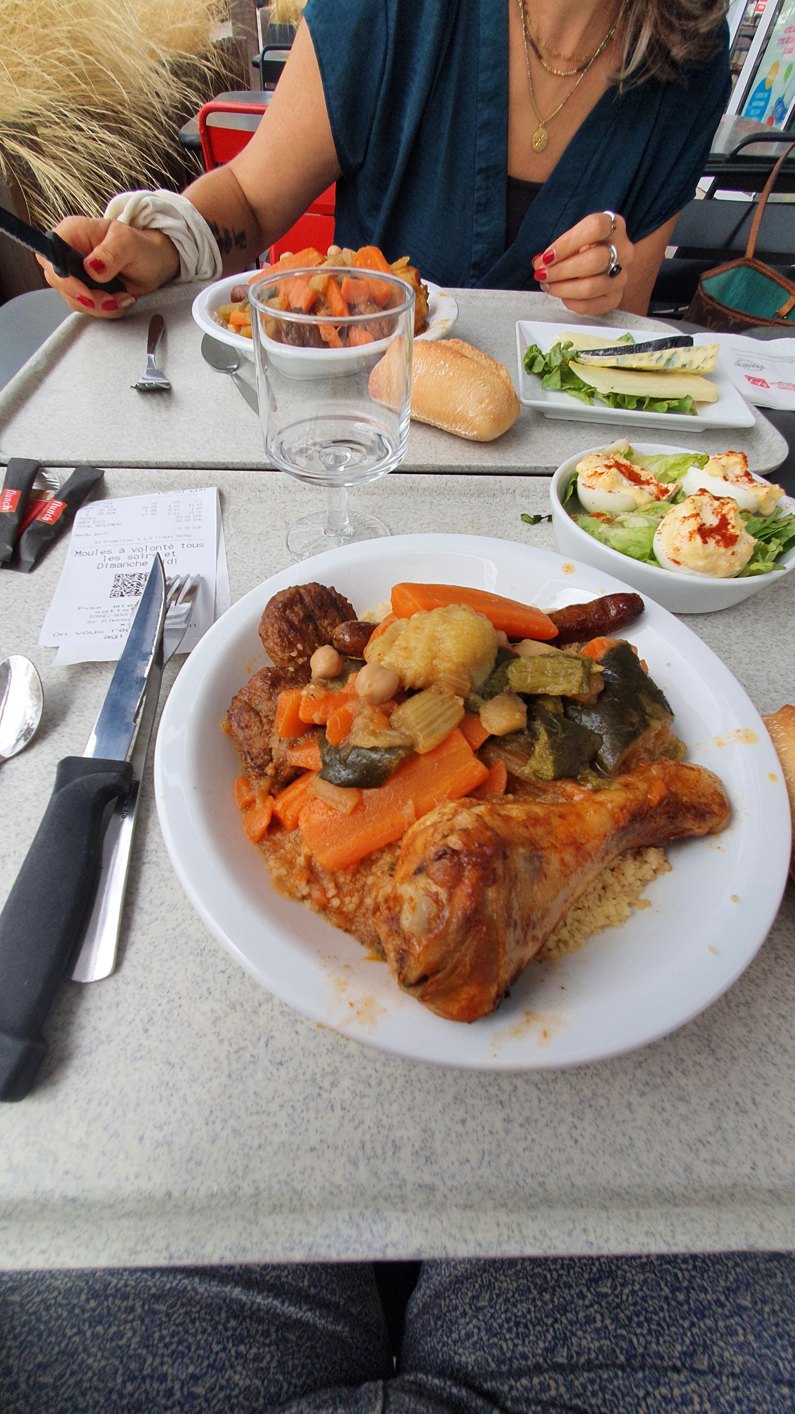 Nous y sommes allés à 2 , pas de choix au niveau des entrées, bols vides. Nous avons pris un couscous très déçus. Poulet pas cuit , la semoule avec légumes très fades harissa sans goût ni piquante . Bref pas bon .....nous l'avons laissé..... 1ere et dernière fois ... dommage
