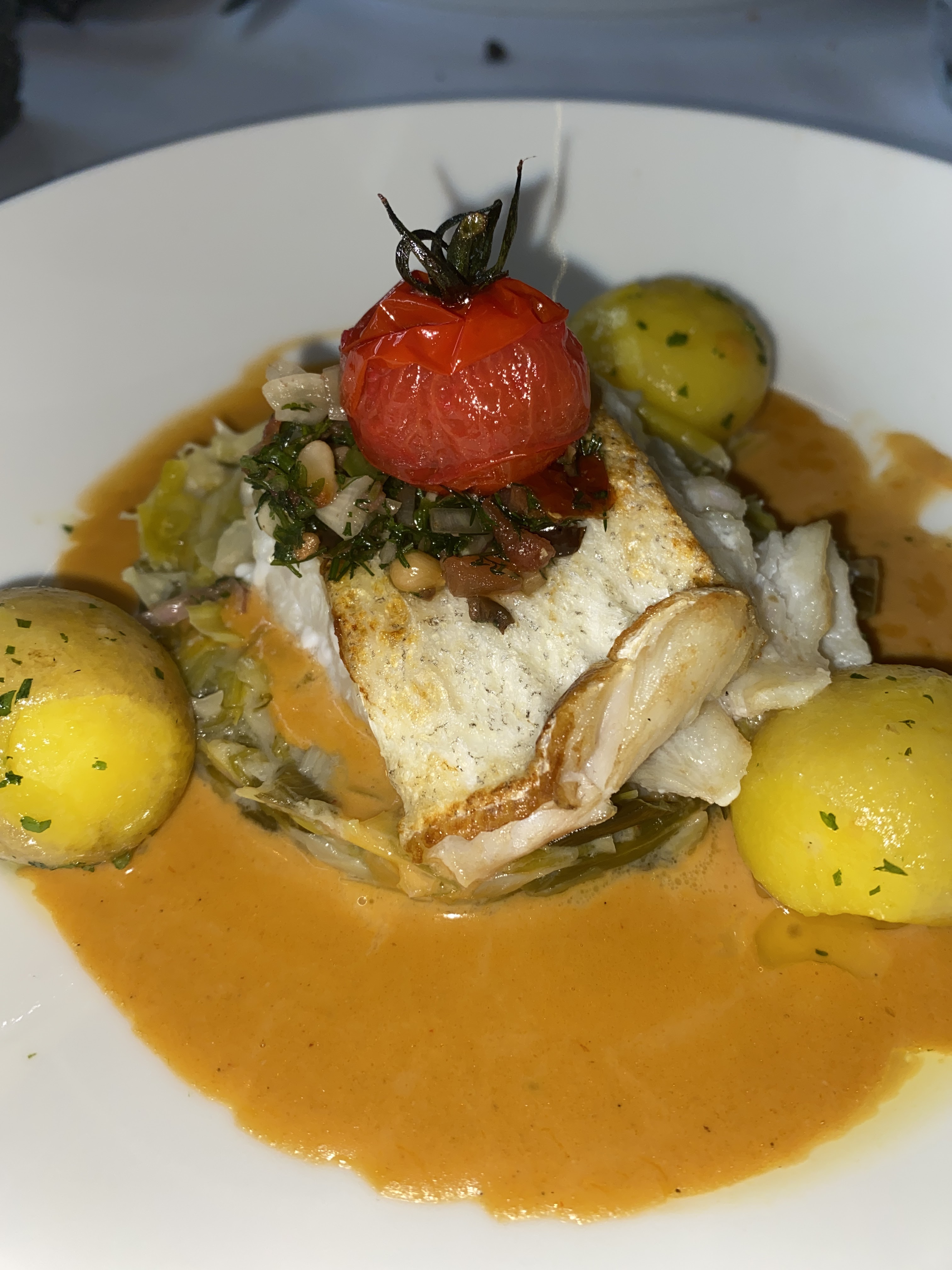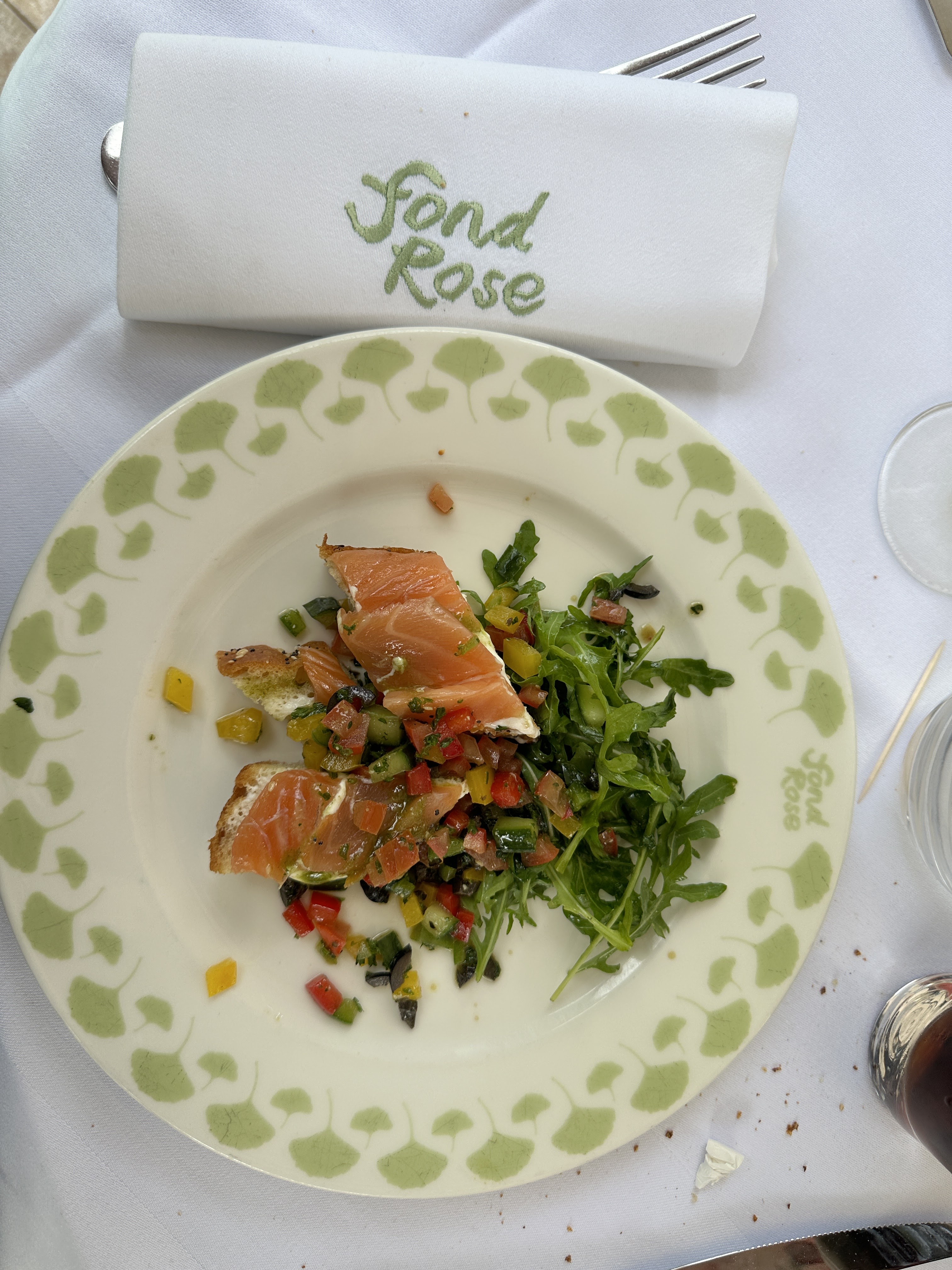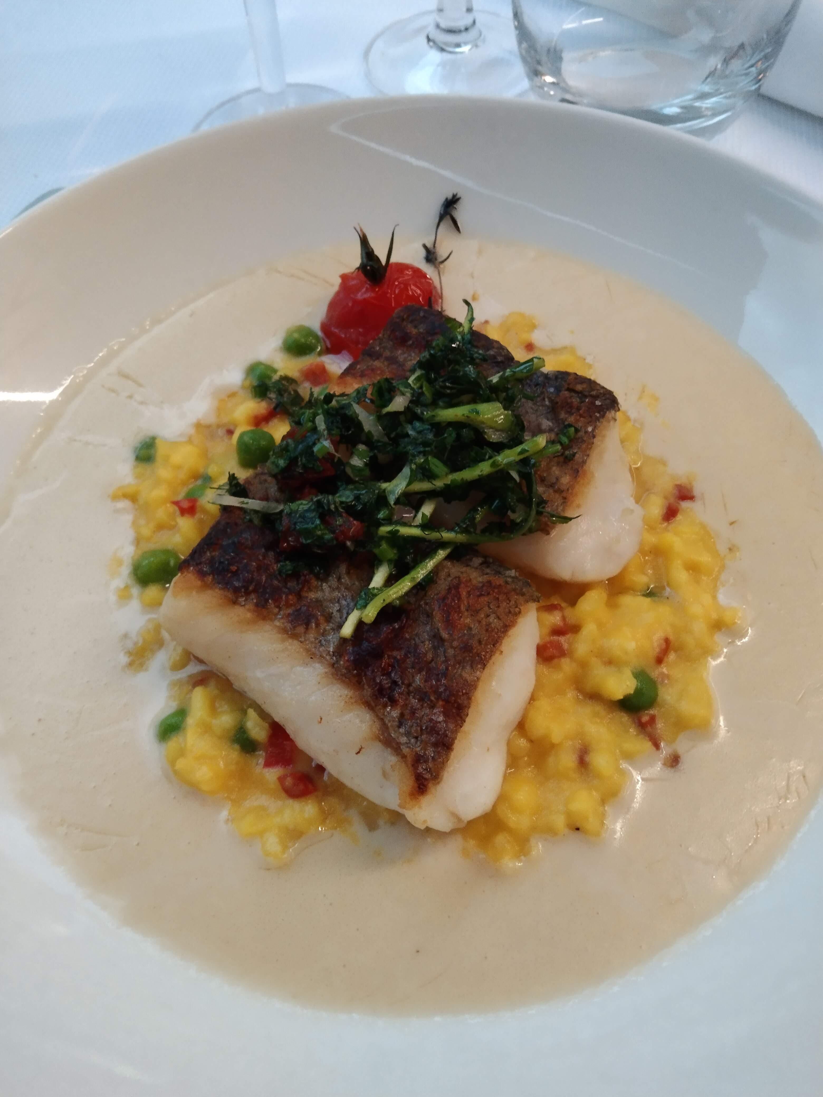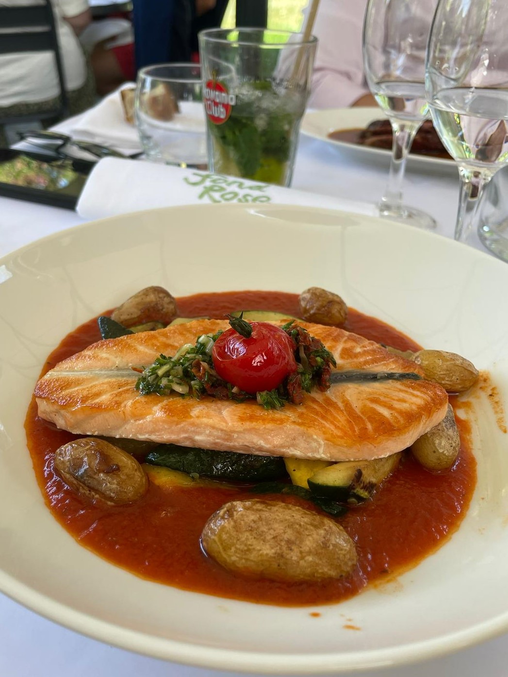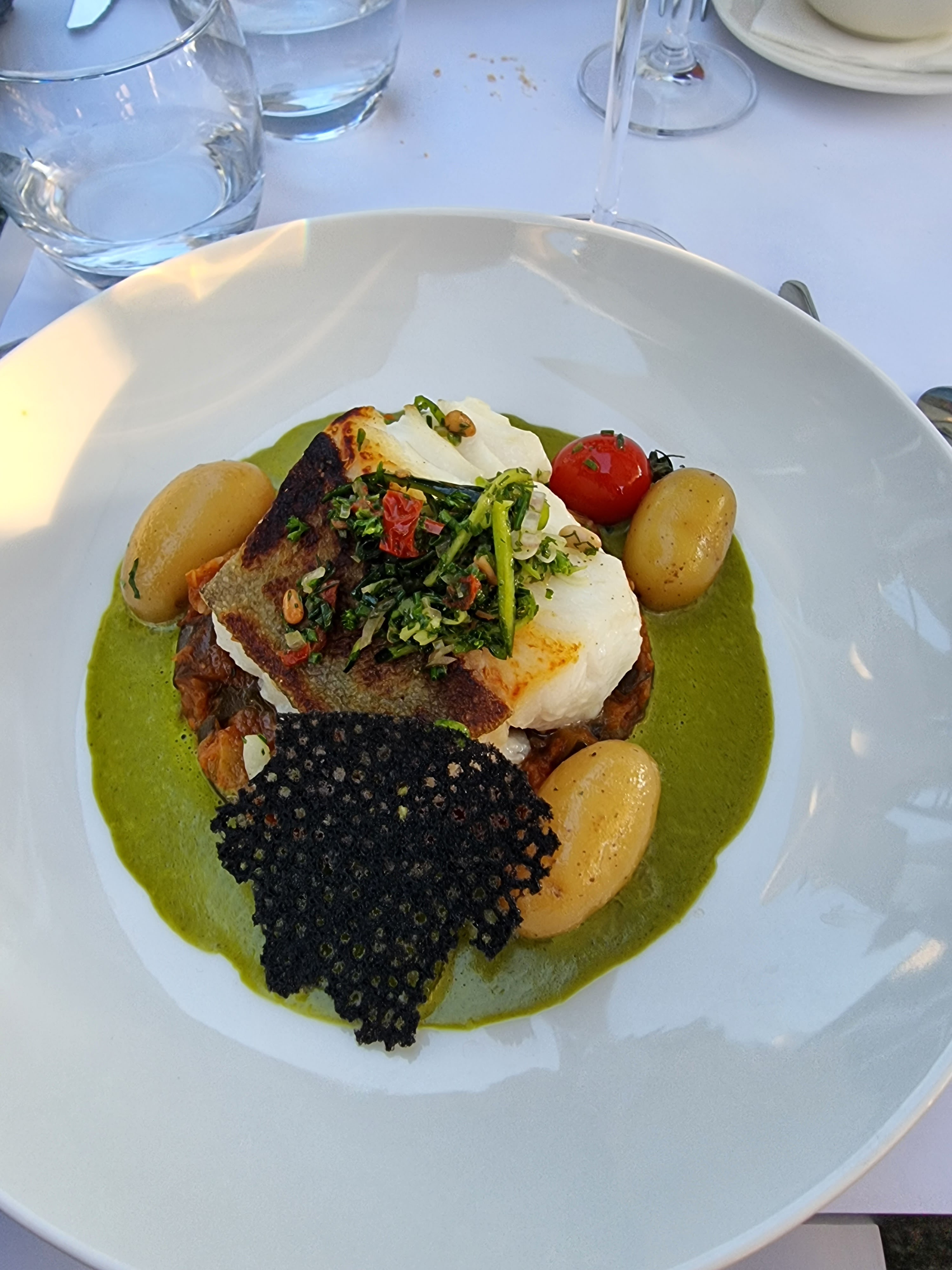 J'ai aimé le cadre, la politesse des serveurs. Niveau des plats tout était Bon dans l'ensemble . Le gaspacho à l'entrée je l'ai trouvé trop acide un peu déçu et pour le filet de dorade c'était bon mais déçu du fondu de poireau trop fade à mon goût ..belle salade de fruits en dessert ! ça reste une super adresse .