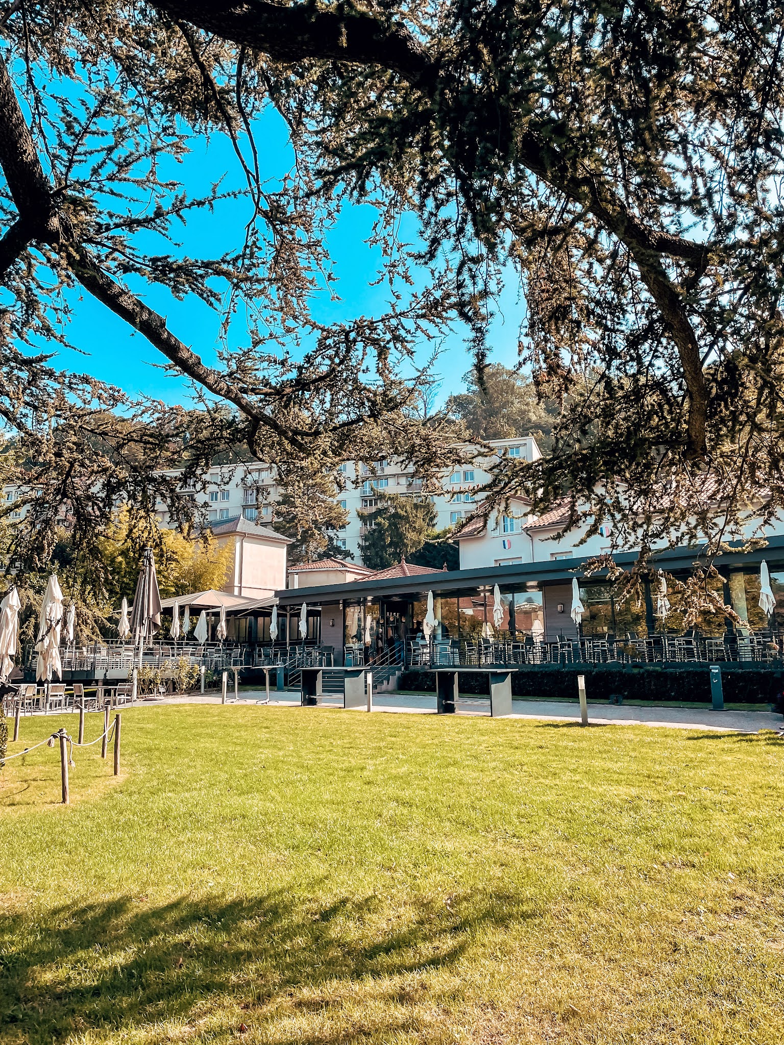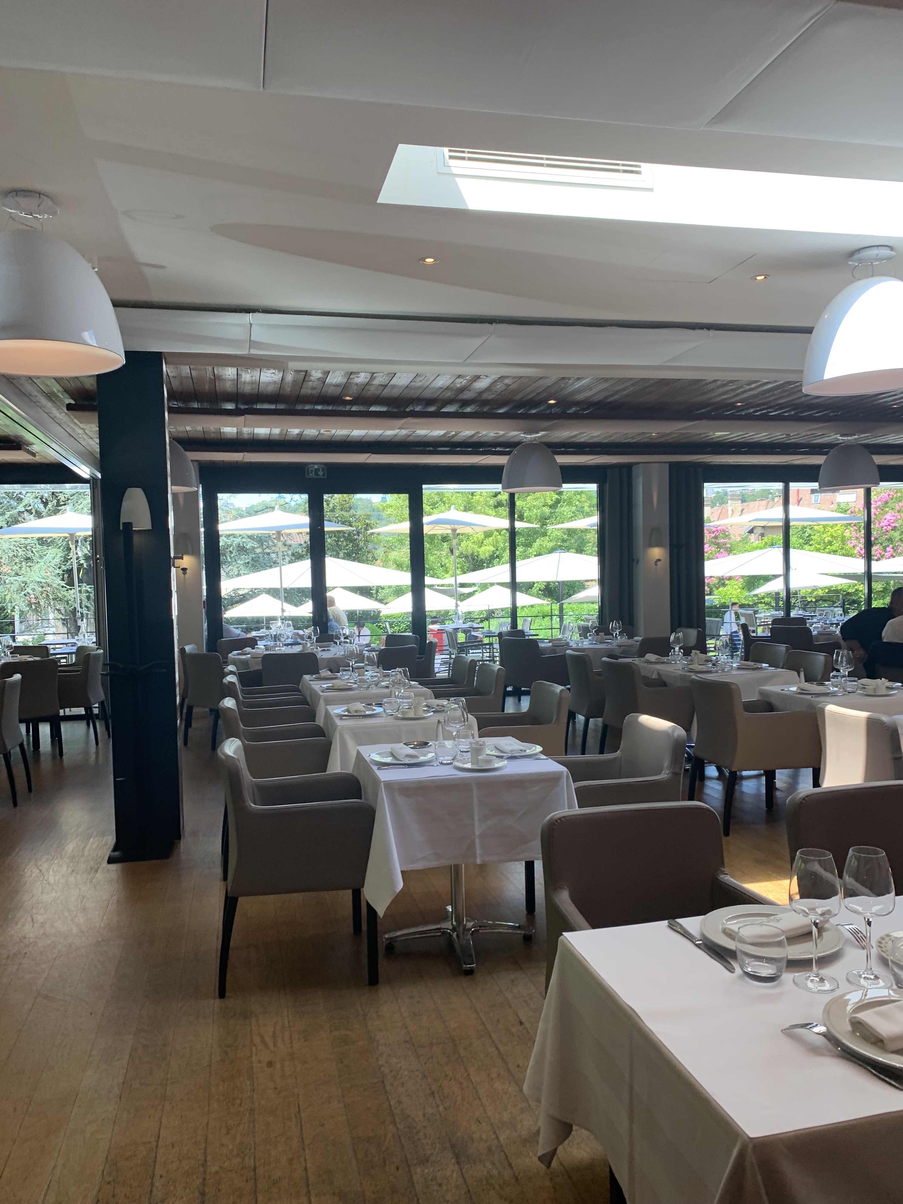 Ce restaurant propose des plats simples raffinés ,et excellents. Le cadre est juste magnifique , les menus sont a prix abordables pour un restaurant de la maison Paul Bocuse . Ce restaurant niché dans un écrin de verdure aux arbres centenaires apportent une sérénité. Le service est au top avec de jeunes serveurs qui sont très pro. Restaurant classe et chic je vous le recommande vivement .