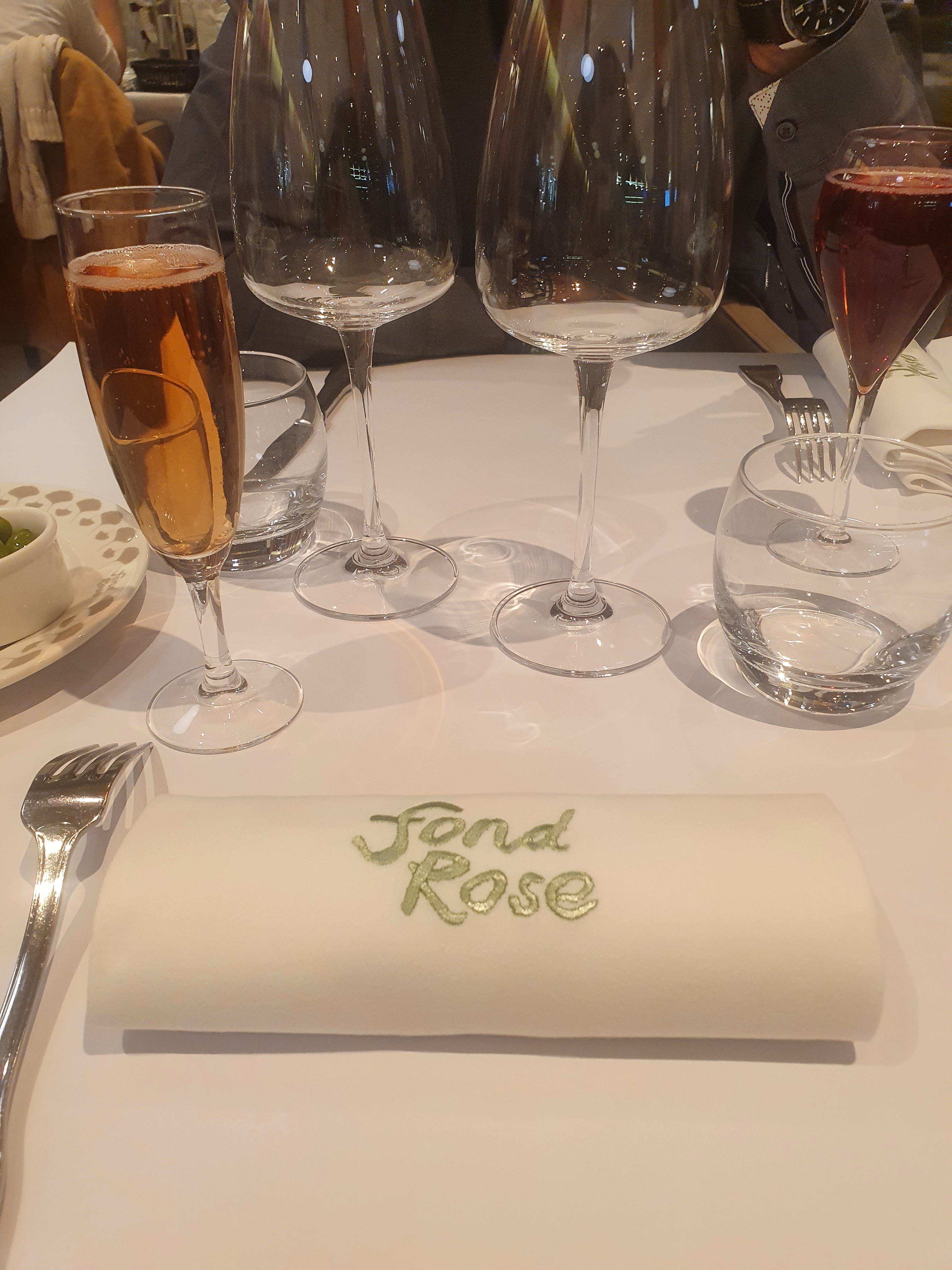 Bonjour, Sommes allés hier, au Fond Rose, cadeau de nos enfants pour nos 50 ans de mariage. Ce fut un très beau cadeau, car tout fut parfait, de l'accueil au service. Nous avons choisi le menu à 56 eu,, un pur régal, du foie gras au dessert tout était bon. Personnel à notre écoute et très avenant. Ce fut un beau cadeau. Merci à nos enfants.