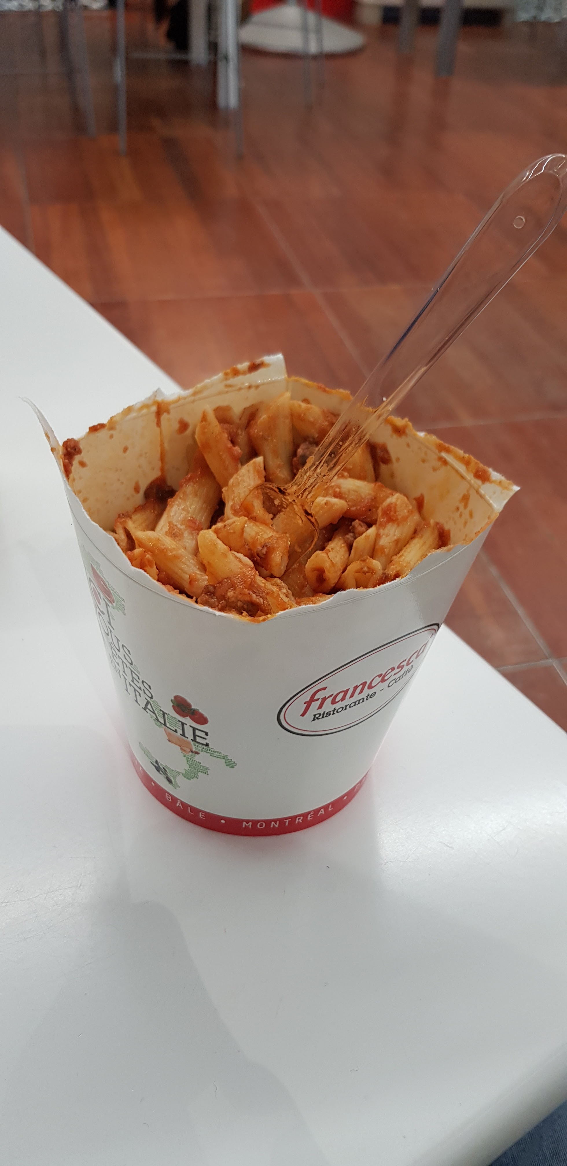 Idéalement placé dans un zone avec beaucoup de passages. Les pâtes sont cuites Al dente ce qui me convient parfaitement. C'est rapide. C'est bon. Le prix est convenable.