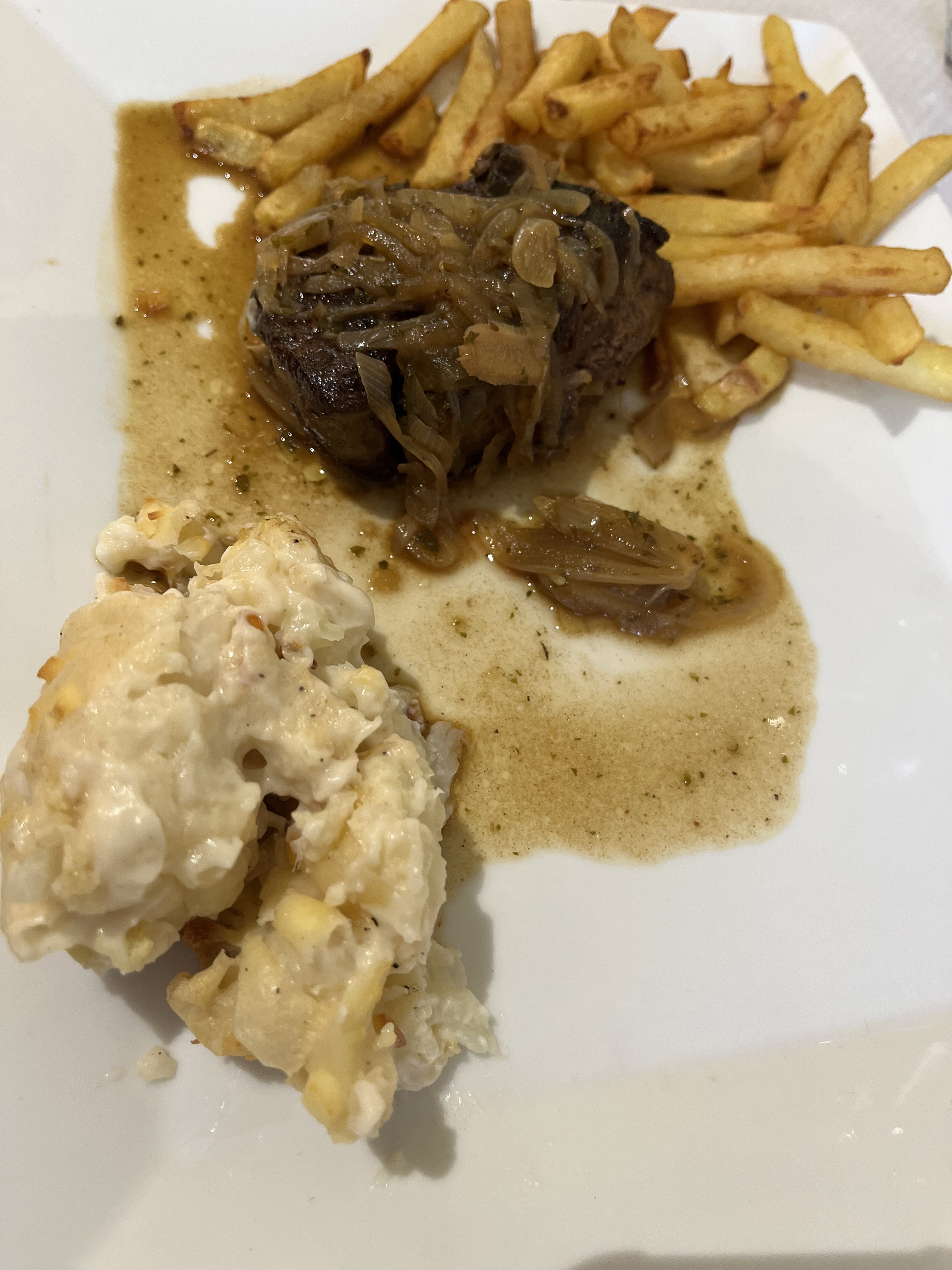 Très bon mais la note ne correspond pas à la réalité très cher pour un menu 12.50 total 27euros avec un demi et un café en plus