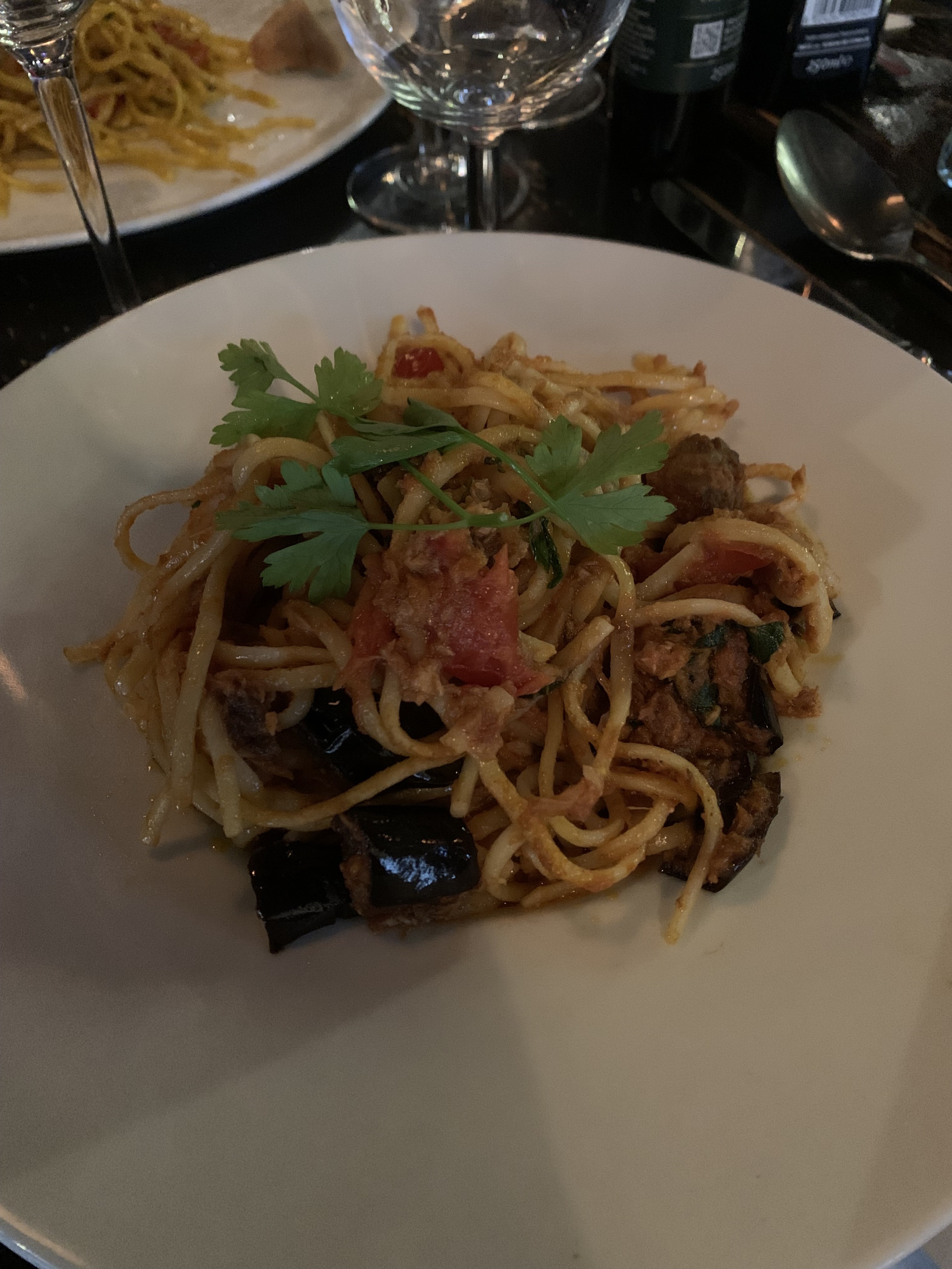 Le service est sympa et efficace Pour la 2ème fois les pâtes étaient froides.. Des gens terriblement bruyant à côté et fumant le cigare pas très compatible avec les mets...