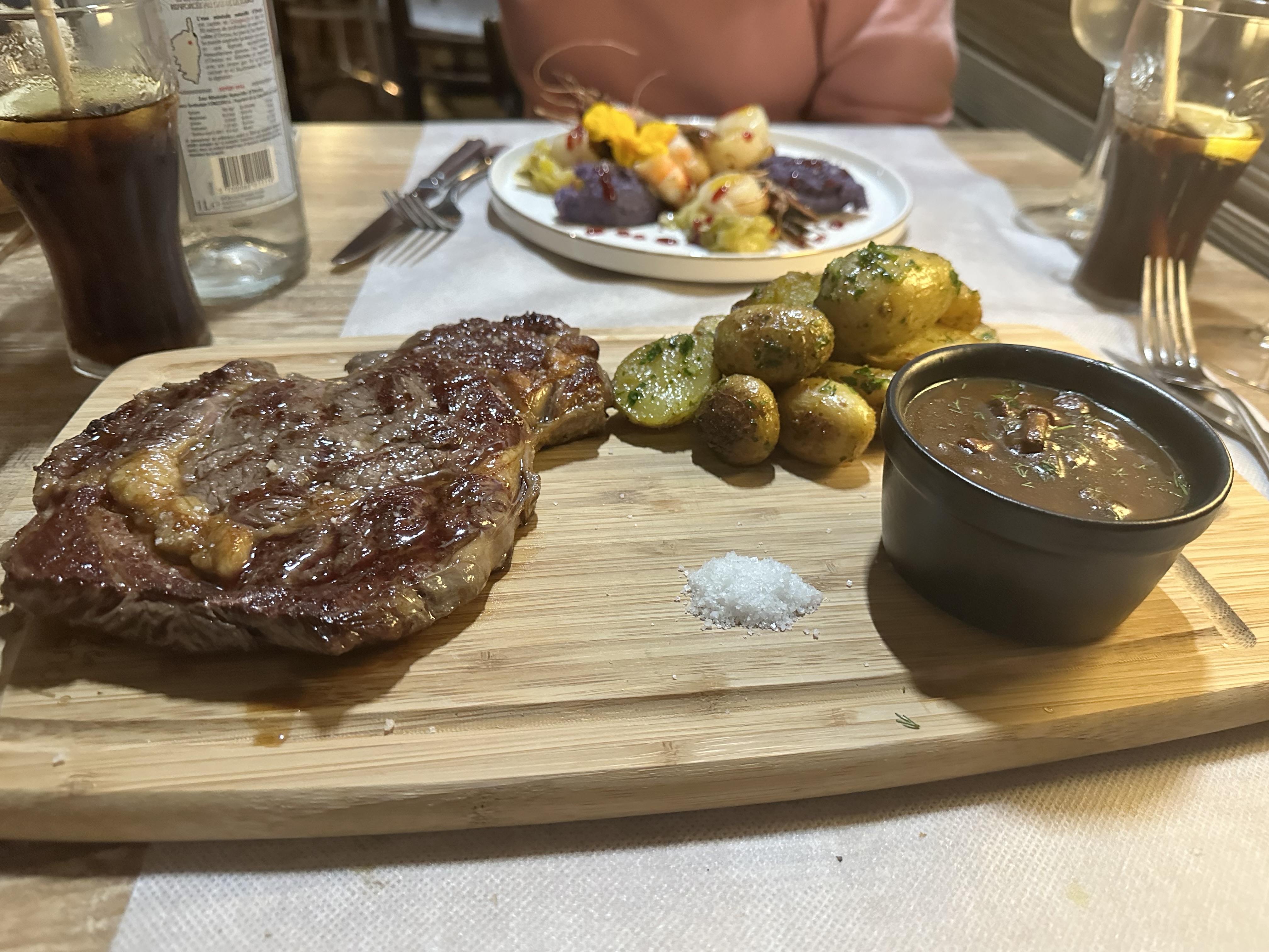 Accueil à revoir... La personne qui devait nous accueillir était en train de fumer pile poil devant la porte d'entrée, personne qui a d'ailleurs tardé à venir nous accueillir. Service cordial mais sans vraiment de sympathie. QR code du menu qui ne fonctionne pas, carte papier qui n'est pas à jour. Les plats sont bons, mais les prix sont assez élevés. Le cochon de lait était un peu sec. Nous avons été déçus du global, donc nous n'avons pas pris de dessert. Vous pouvez retrouver d'autres adresses corses sur notre Mapstr: Gueyome :)