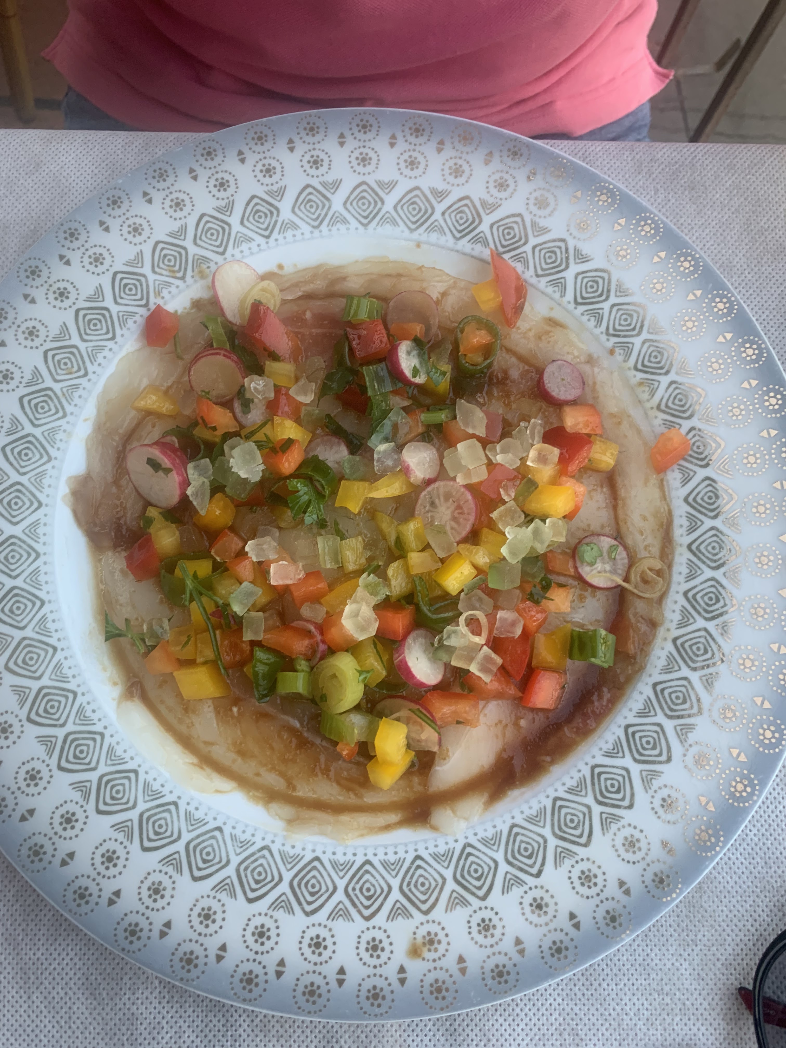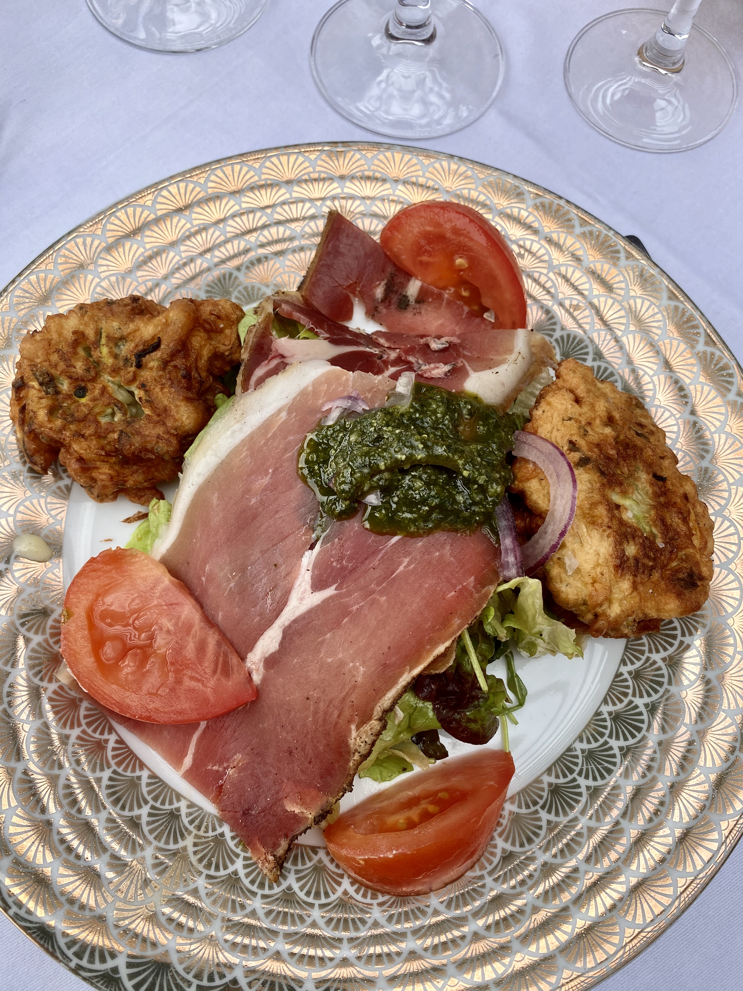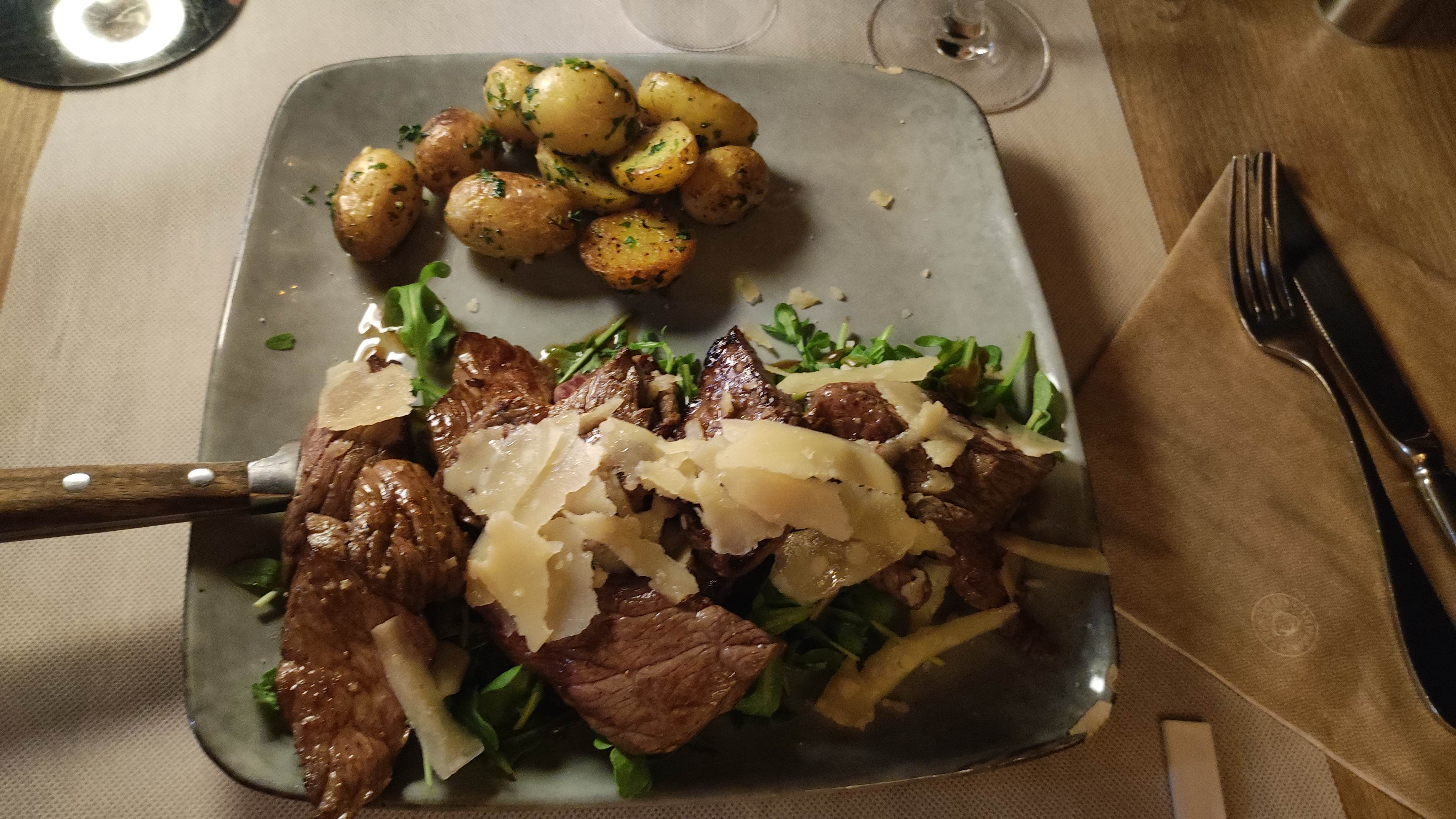 Pour commencer l’accueil par le patron est assez antipathique.(pas très pro). Tagliatta de bœuf: viande tranchée avant cuisson, trop cuite et pas tendre. Filet de loup: plat sans aucun goût. Il vaudrait mieux privilégier la qualité à la quantité ! Encore un restaurant qui a plus d’étoiles pour sa situation et non pour la qualité des plats.