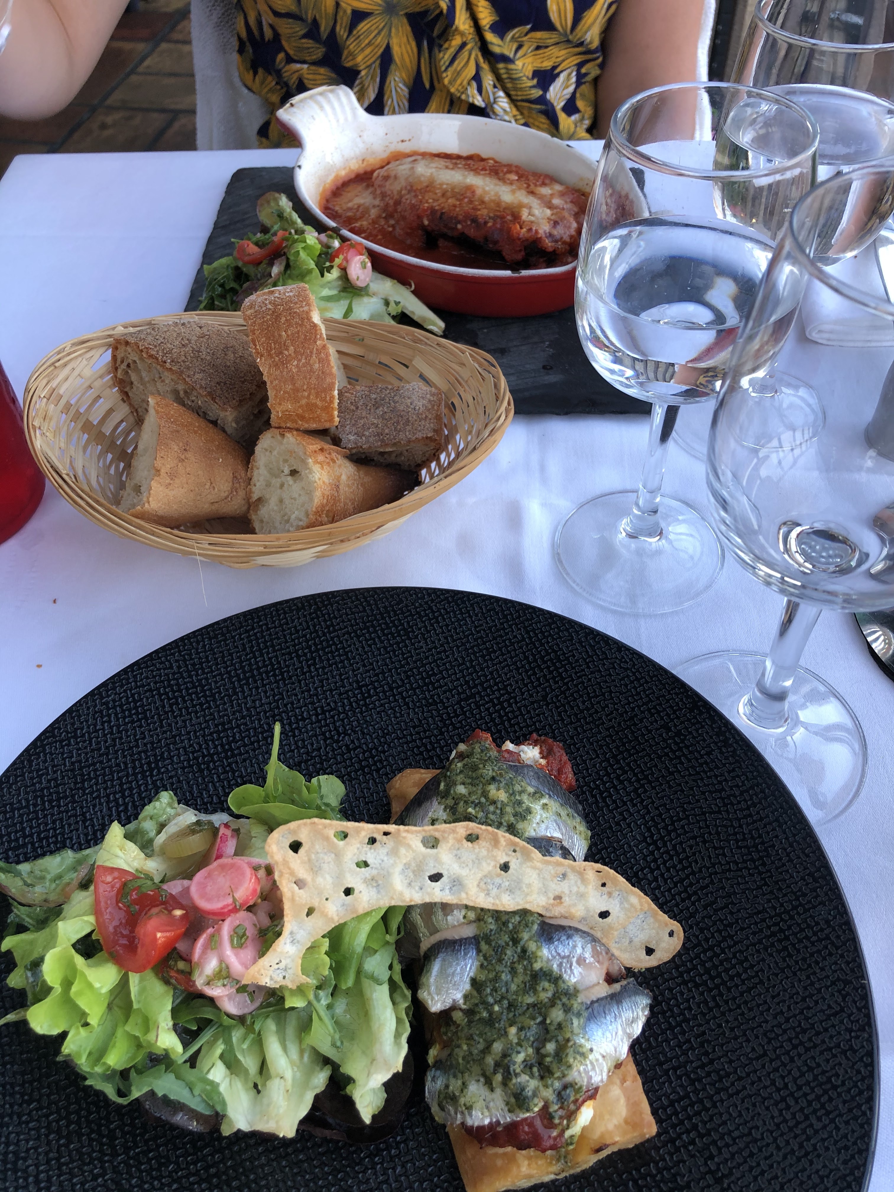 Les entrées délicieuses, les plats tres bons aussi, le service agréable et la terrasse avec la vue en bonus.