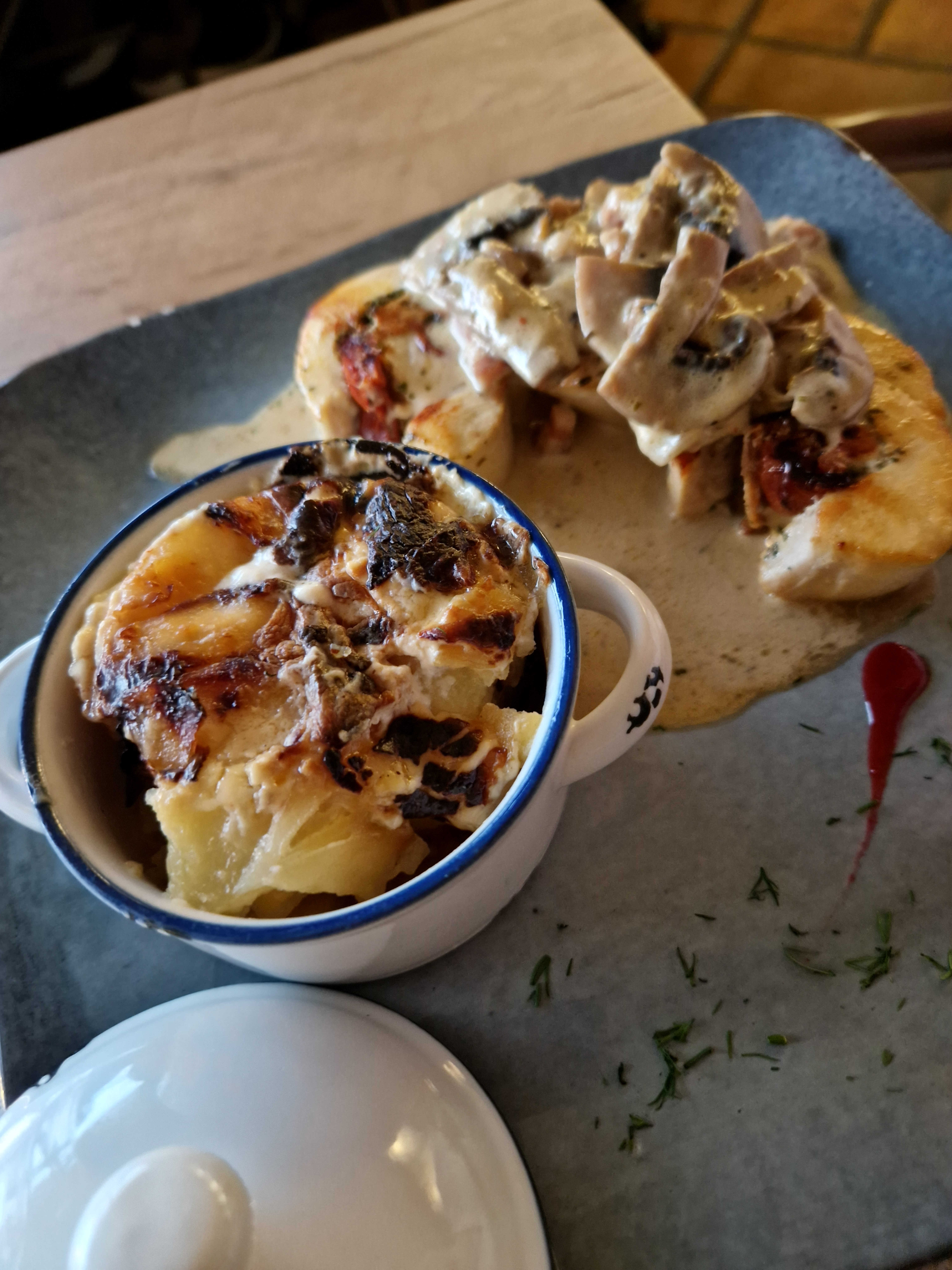 Bel endroit magnifique vue. La salle du haut est vraiment coller les un sur les autres. De très belle assiettes mais c'est beaucoup trop copieux même pour un bon mangeur. Après l'entrée, je n'avais déjà plus faim.. c'est fort dommage.. un effort de présentation pourrait être fait sur l'agneau mais sinon bonne table.