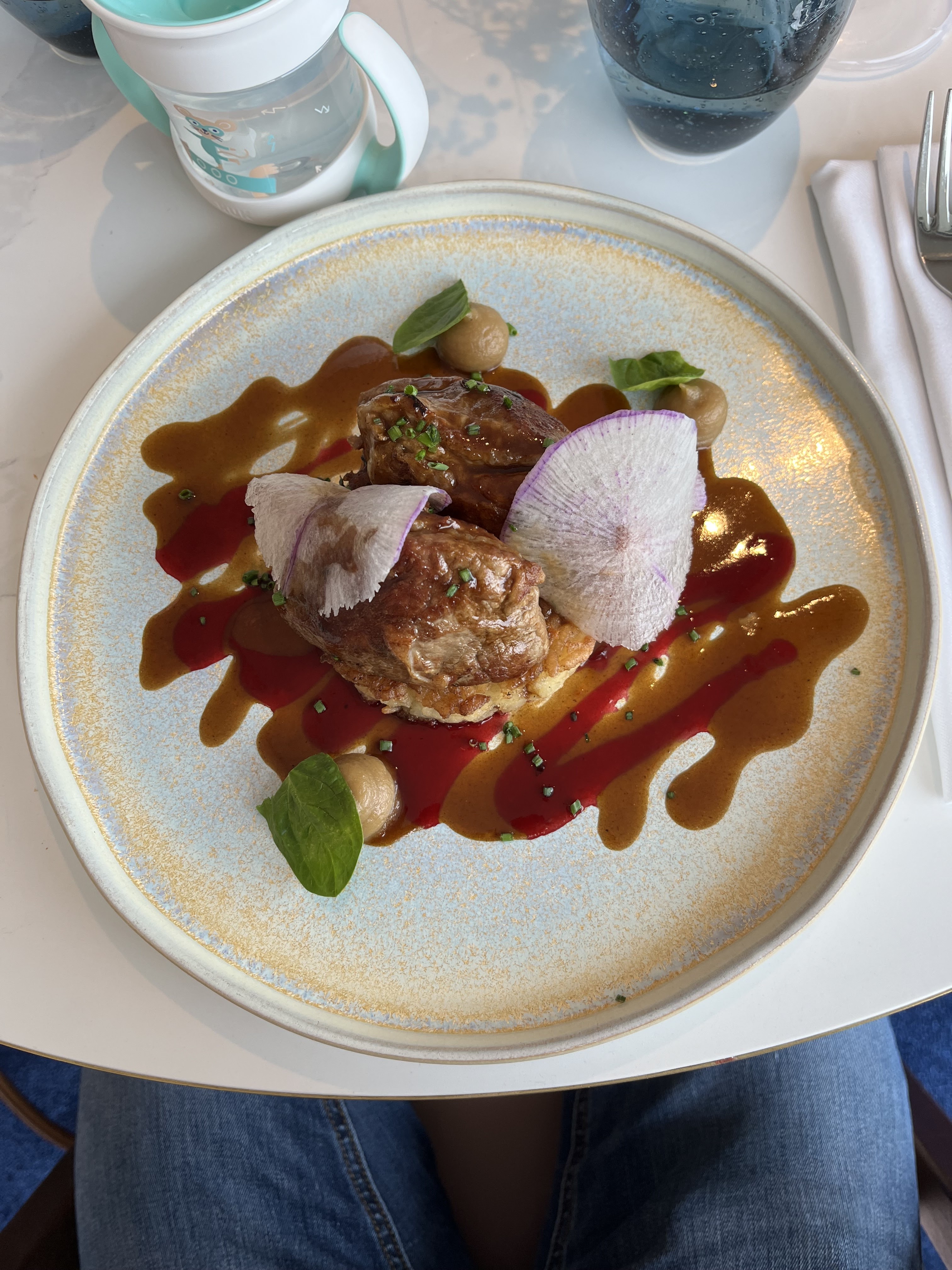 Accueil très sympathique merci de nous avoir proposé et laissé visiter le coté piscine ou port pour choisir l'emplacement de notre Déjeuner. Super cadre c'est beau, très beau on a apprécié la salle climatisée avec la chaleur de la journée ! Coté nourriture les saveurs sont là et les quantités tout à fait raisonnable, nous avons choisi de prendre à la carte et le rapport qualité prix est correct. La poitrine de cochon très savoureuse. Coup de cœur pour votre Mojito du Gaée je ne connaissais pas ! Merci au serveur de nous avoir conseillé pour l'accord mets & vins et de nous avoir présenté nos plats! Points Perfectible, nous aurions adoré finir la tapenade en amuse bouche avec le pain mais elle a été enlevé aussitôt les croutons mangé.., de même pour l'entrée j'aurai voulu saucé ! mais à peine la dernière bouché prise, plus d’assiette... Prenez le temps de nous laissez choisir dans le menu, vous êtes passé à l'instant même ou nous étions assis et 2 autres fois en moins de 5minutes..dans un restaurant ou seulement quelques tables étaient présente. Ceci dit nous reviendrons c'est certains ! et vous souhaitons bonne continuation !