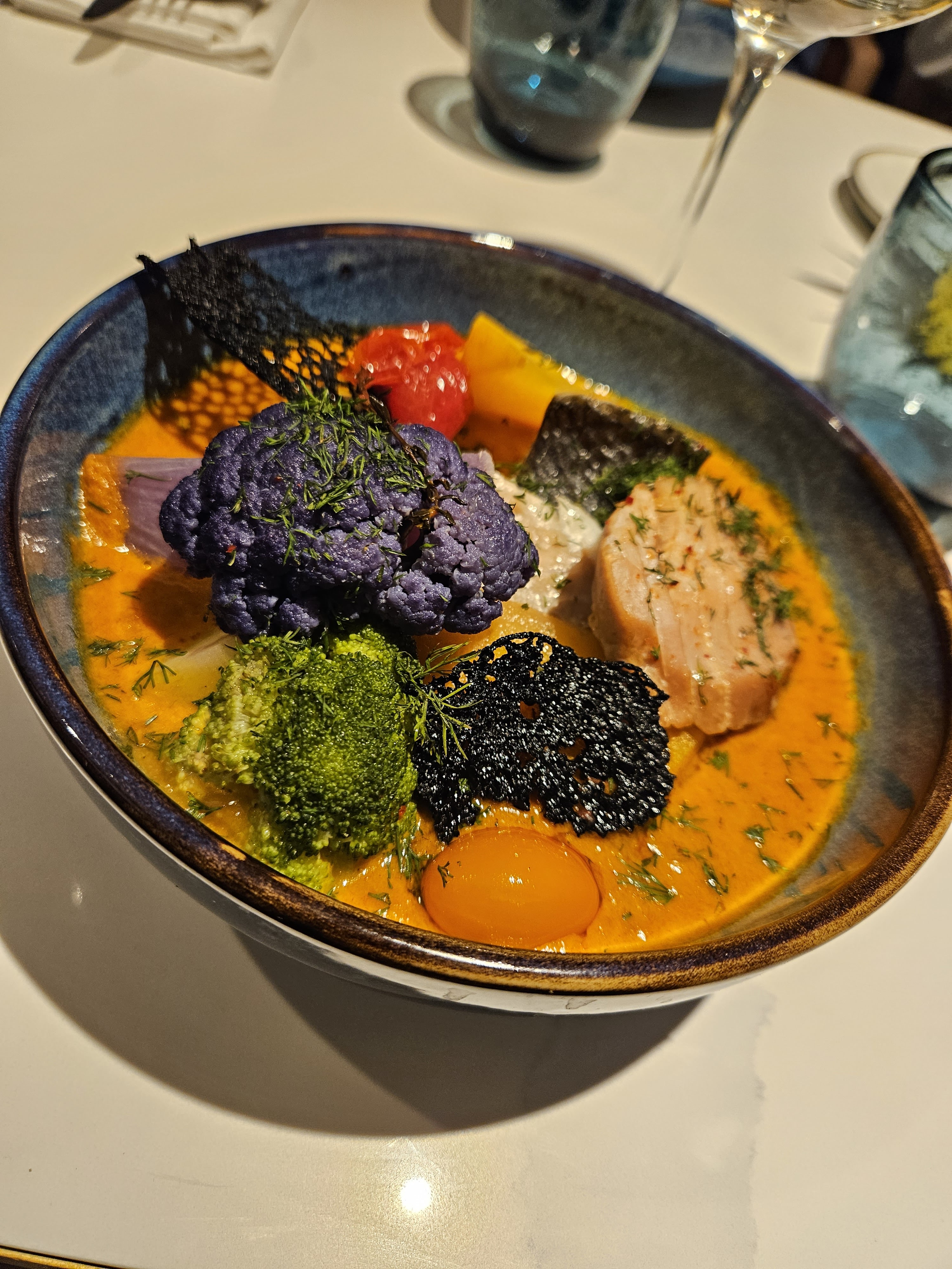 Carte travaillée pour un restaurant situé dans un hôtel. Nous avons beaucoup aimé le Tom kha kai. Les desserts sont copieux. Le service demande un peu de rodage mais cela s'améliorera sûrement avec le temps. La terrasse est agréable. Ambiance chill (on reste dans un hotel) mais le serveur nous a recommandé le France 1 situé sur le port pour ceux qui veulent faire un after.
