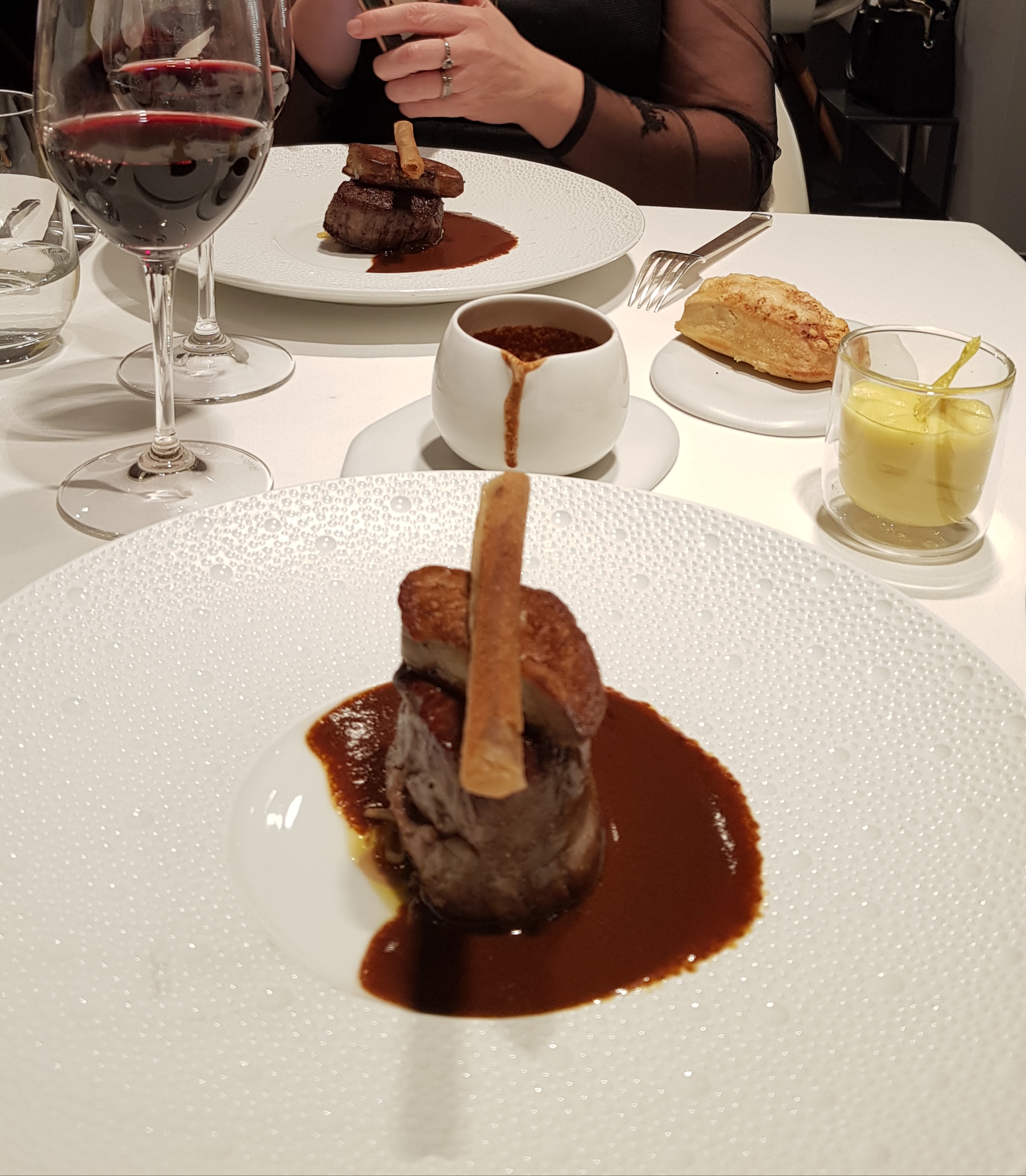De l'excellence, feuilleté a la Tapenade à la truffe, dessert chocophile. Des produits de saison et de qualité mais pas assez sublimés, pas d'émerveillement ou d'explosion en bouche ( saint pierre trop cuit a mon gout et sans saveur memorable). De la jolie vaisselle. Millefeuille vanille framboise, creme pâtissière lourde et basique, on ne sentait pas la vanille. Mise en bouche hareng et sorbet mangue, points balsamique citron thym...un délice. Service impeccable souriante, appliquée et discrète. Les lumières au dessus des tables sont aveuglantes. Pour ma part une déception.