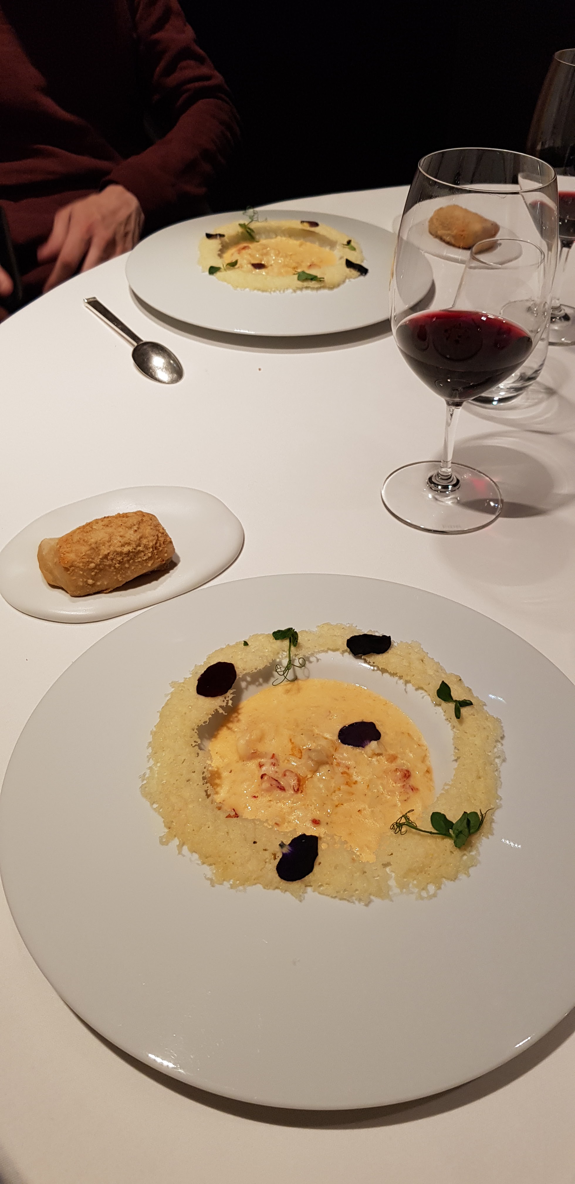 À quoi s'attendre!? Environnement légèrement froid mais pas trop formel. Le service est vraiment excellent et sympathique. Le menu est bien proposé et offre de nombreuses options pour tous les types de clients et de goûts. La nourriture est étonnante. Des plats comme les coquilles Saint-Jacques ou la soupe aux truffes (servie avec du pain aux truffes fraîchement sorti du four) sont tout simplement parfaits, d'autres comme le filet au fuagrau ne sont que corrects ; la composante sucrée (graisses, figues, réduction de vin était) trop. Le même problème était dans le. Desserts un peu impalancés à cause du sucre ou de l'alcool. Les gars, c'est un restaurant à essayer. C'est tout simplement excellent mais de la part d'une étoile Michelin j'attendais une perfection totale. Restaurant fortement conseillé. Prix vraiment juste quand on compare avec la qualité. J'ai vraiment apprécié les entrées proposées sur le menu.