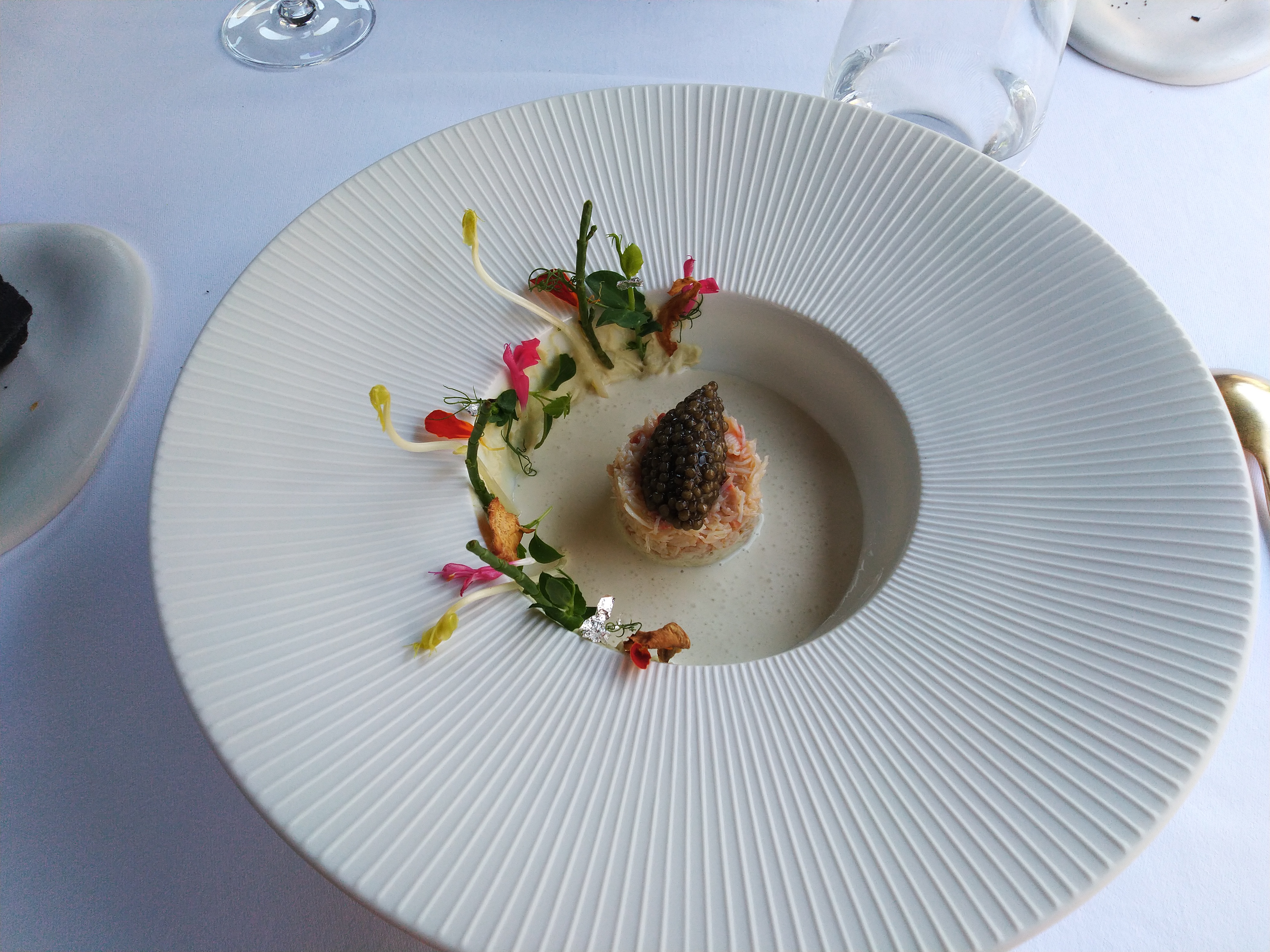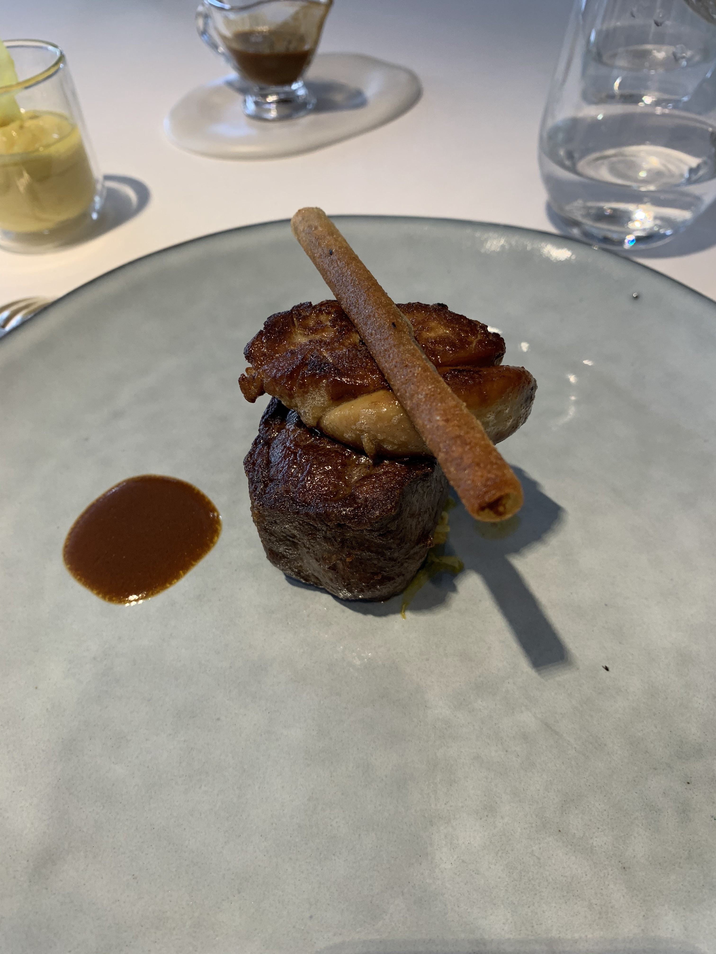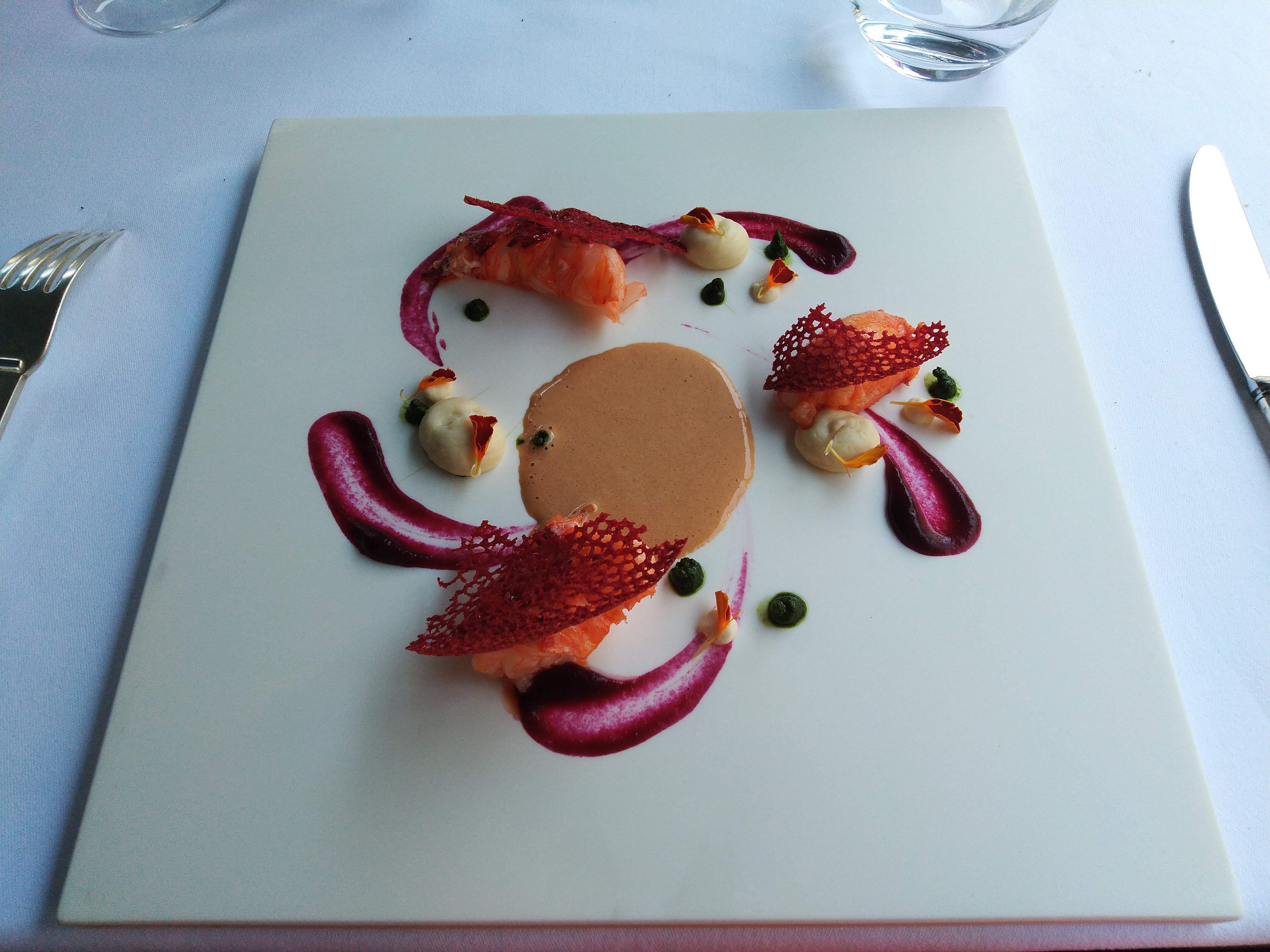 Expérience gastronomique réussie avec des étoiles tant sur le plan visuel que sur le plan gustatif. Un régal avec finesse et rigueur: mélange de sensations, de saveur, de texture. Aventure à vivre. Eblouissant plat que je vous laisse regarder et deviner.....