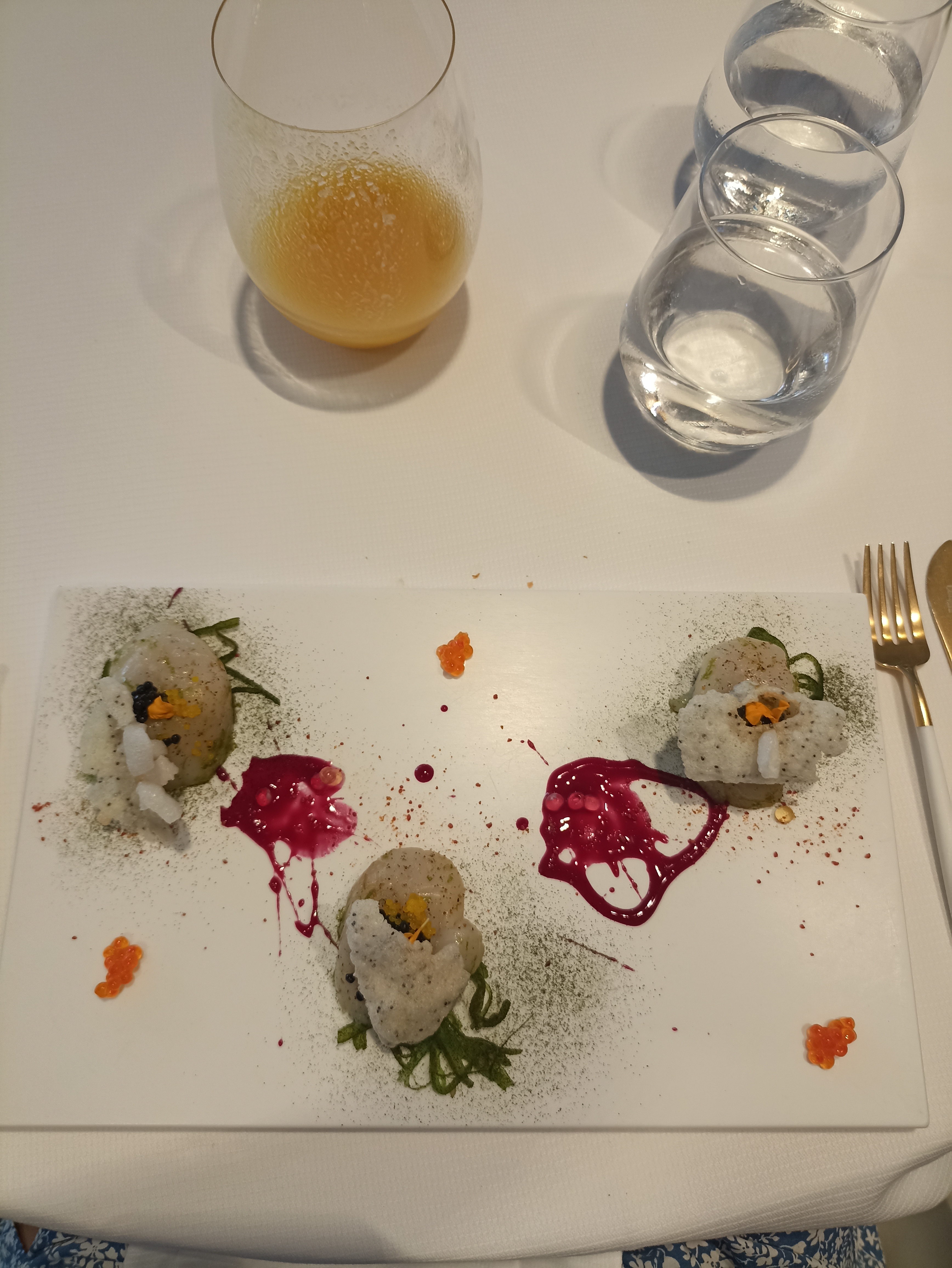 Tout parfait ! Dans tous les sens du terme...tous les sens ont été de la partie... le goût certes mais l'odorat et la vue n'ont pas été épargnés...un restaurant excellent !