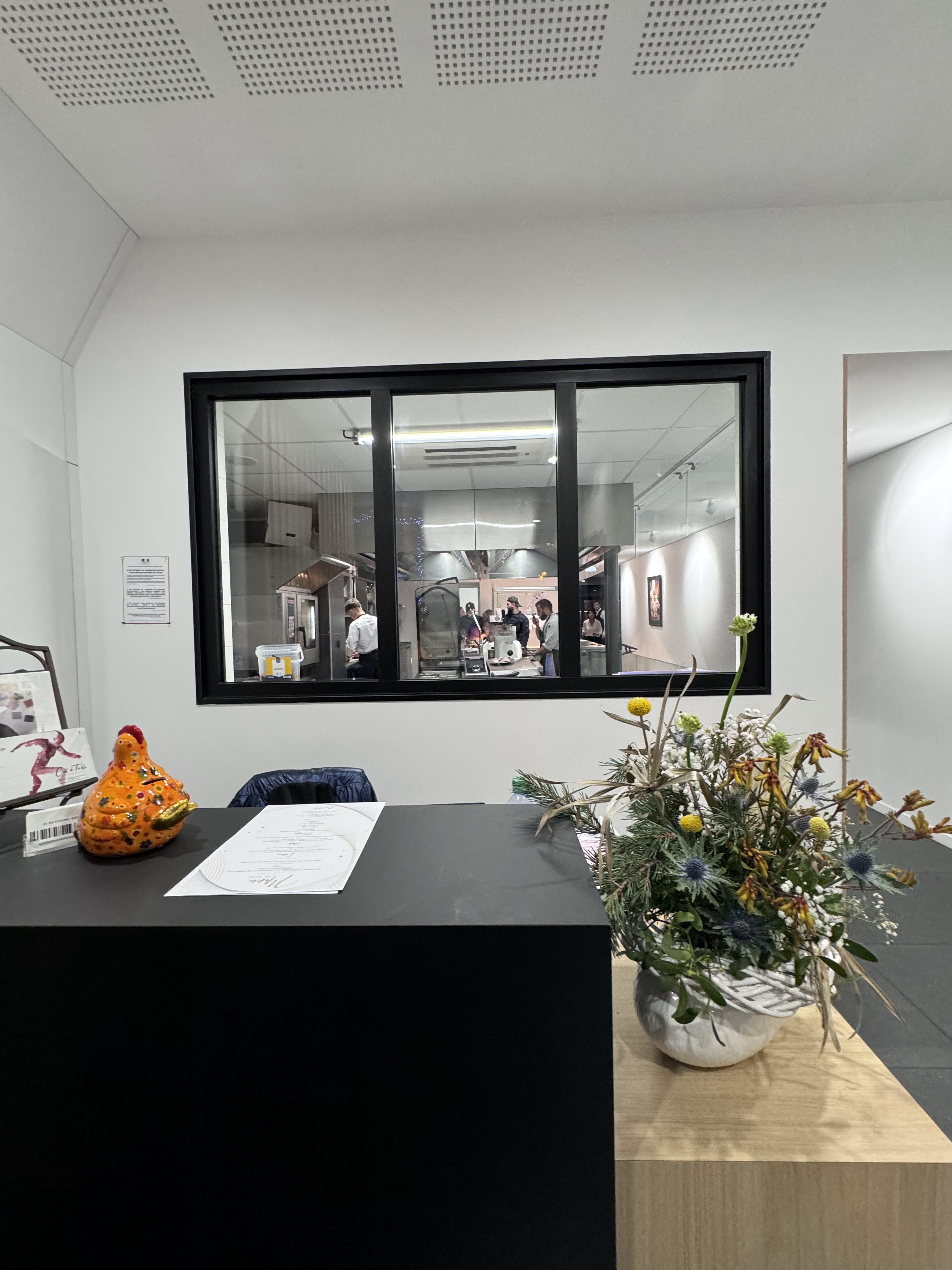 1ere fois qu on ouvre la porte, très bel accueil, chaleureux , très joli, j ai adoré la déco, l ambiance, on s occupe de vous, produits sur le bout des doigts, on a adoré le choix des menus, rien à dire J ai beaucoup adoré le service, les hôtes, Je reviendrai avec grand plaisir!!!
