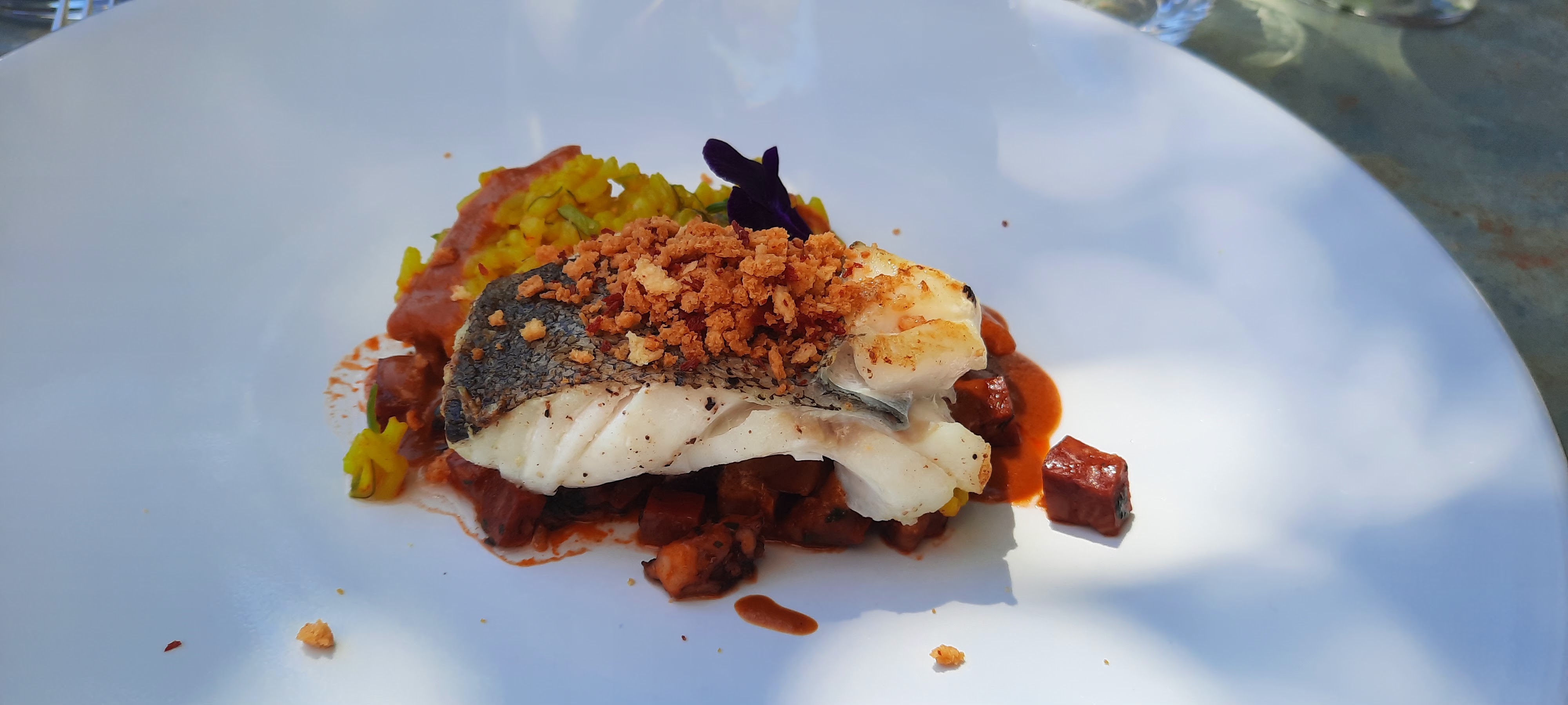 Très bon restau, saint-jacques poêlée savoureuses suivi d'un filet de bar et d'un dessert haut en couleurs