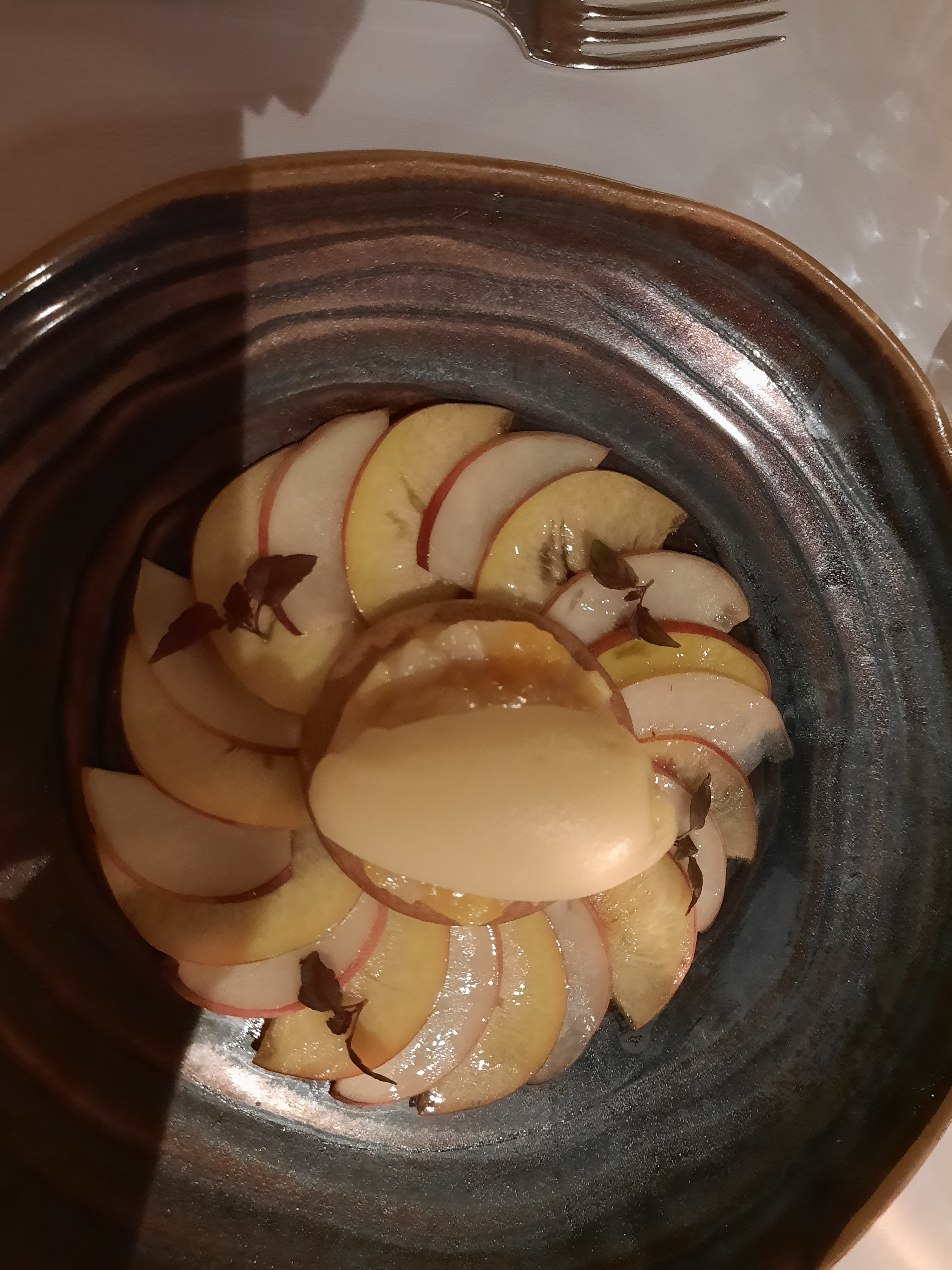 Je donne 5 étoiles avec beaucoup de conviction ! Très bon restaurant dans un cadre rustique. Service avec une grande attention aux détails et au service à la clientèle. Les entrées du chef sont vraiment de bon goût et de raffinement. Nous avons pris deux plats principaux, un poisson et une viande. Des plats excellemment composés avec des légumes en accompagnement aux saveurs et arômes délicieux. Incroyable dessert aux abricots Un excellent dîner ! je vous conseille PS : Nous sommes italiens et mangeons bien !