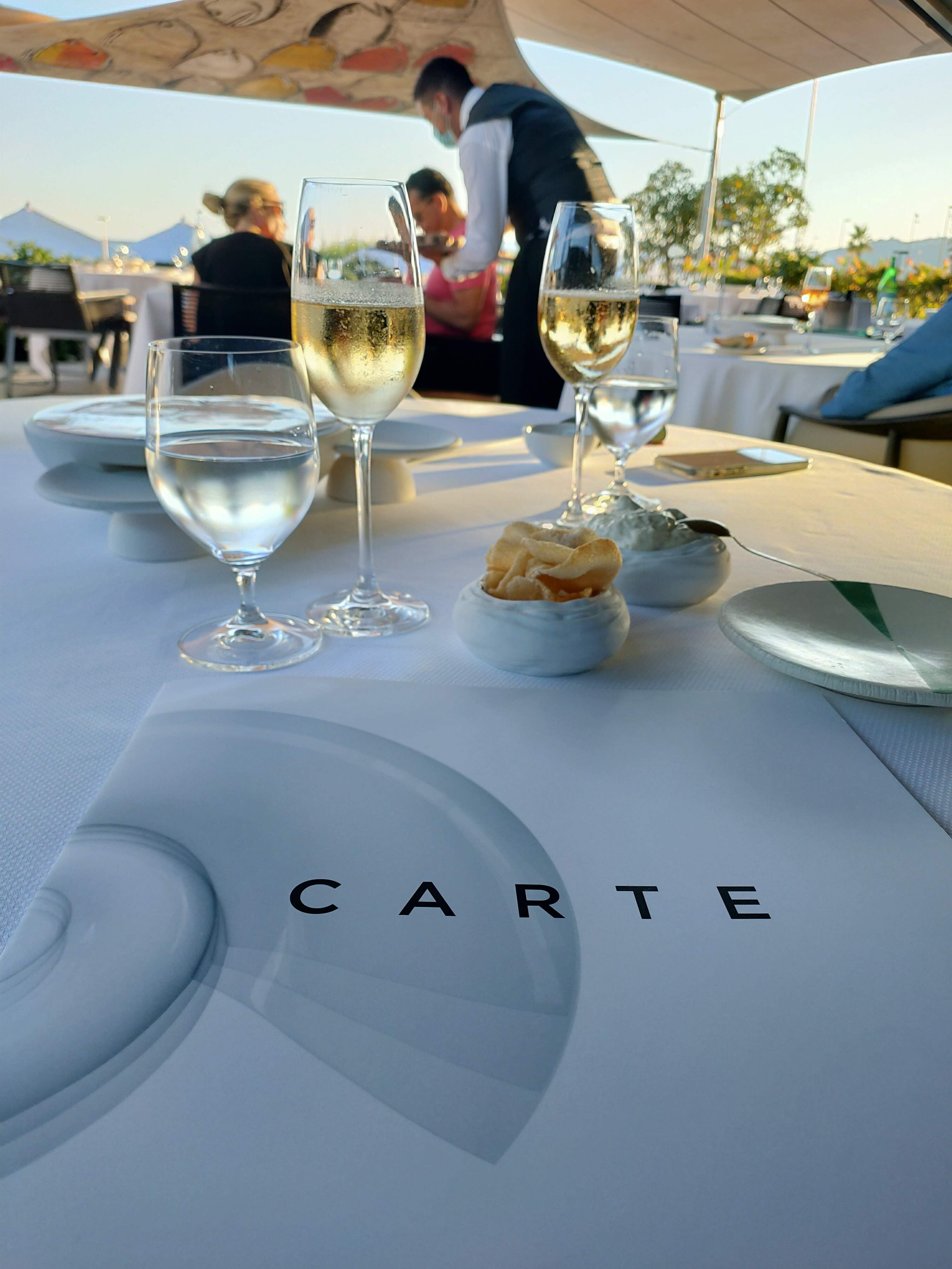 C'est un restaurant étoilé Michelin avec un excellent service et dans un endroit magnifique mais coincé et ne vaut pas son prix à mon humble avis. - Prix/Valeur (150Euro + par personne) : La nourriture est dans l'ensemble très bonne mais beaucoup trop chère. 38 euros pour une entrée de courgettes frites ou une tarte aux pois chiches crus, ce n'est pas acceptable et le double du prix même des meilleurs restaurants londoniens. Secteur 70+. - ATTENTION Dress code : pantalon long pour hommes obligatoire. M'a envoyé faire un aller-retour de 45 minutes à la maison parce que je portais un (joli) short mais une femme sur la table voisine était autorisée à entrer avec un maillot de bain. Nous sommes en 2023, pas en 1923. - Préparez-vous à rester assis là très longtemps. Nous nous sommes assis juste à l'ouverture du restaurant et sommes partis après 3,5 heures. Nous avons dû attendre longtemps pour commander et entre les plats.