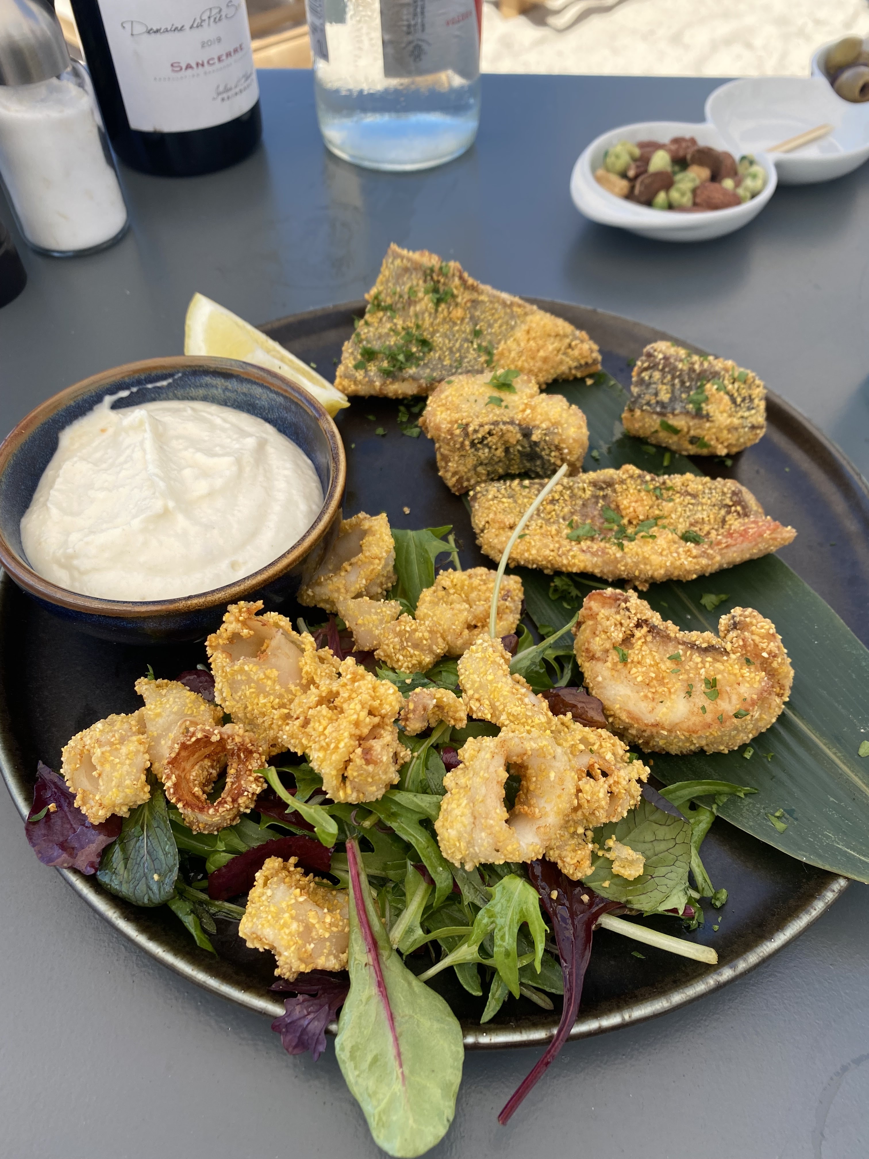 Le meilleur dîner des vacances ! Restaurant de plage élégant et exclusif ! Nourriture délicieusement équilibrée et surprenante, emplacement magnifique et personnel extrêmement serviable. Une combinaison parfaite de plaisir pour les yeux et le palais digne de la nomination des Relais & Châteaux. Essayez absolument les brochettes suspendues, nous reviendrons sans aucun doute !