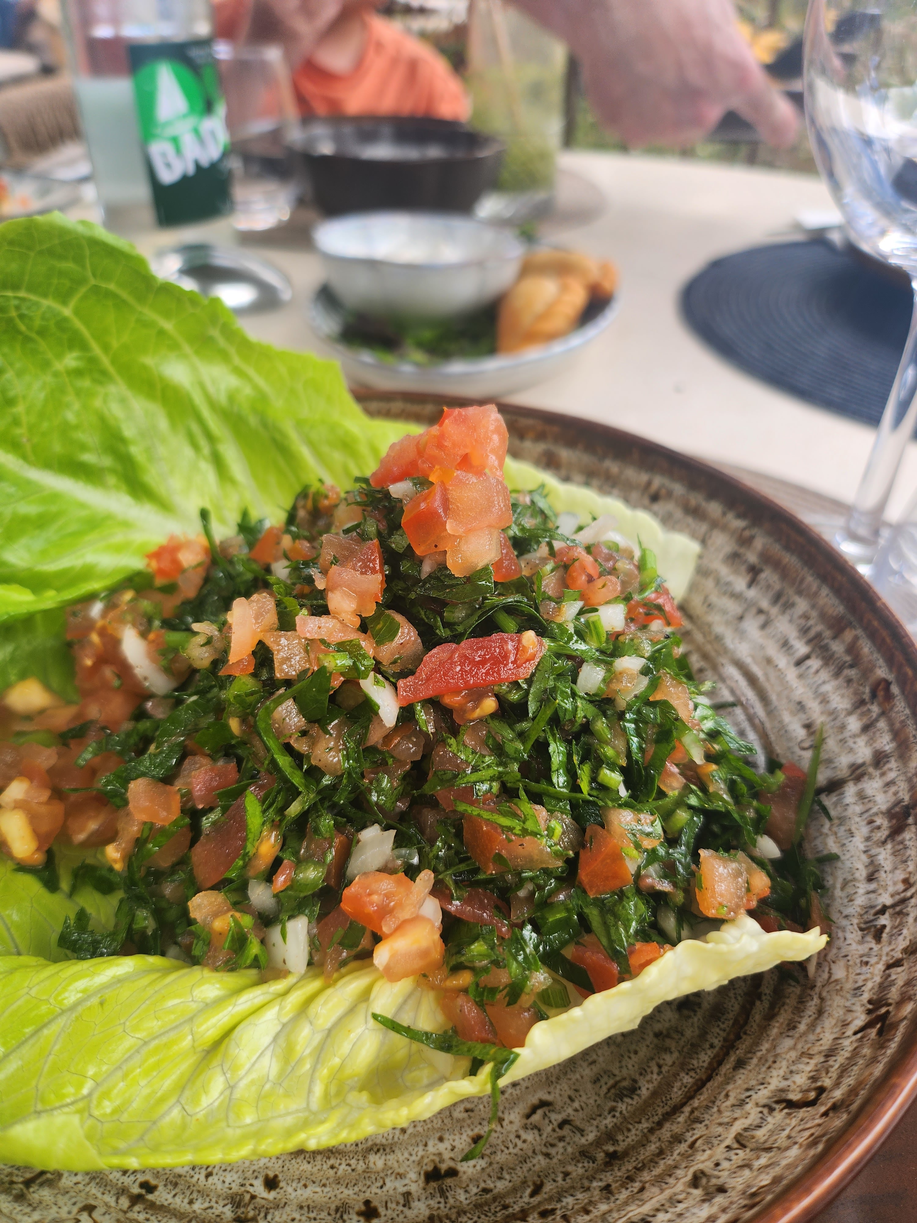 Waouh! Quelle expérience gustative! Mes papilles n’ont jamais goûté une cuisine libanaise si savoureuse, toute en textures, en senteurs, en goût! On s’est régalées comme jamais… et l’équipe est vraiment sympa, aux petits soins. Nous nous sommes installées sur la terrasse donnant sur le jardin, c’était une très belle journée et un repas inoubliable… du coup on y retourne dans 3 jours!!! 😊🙌