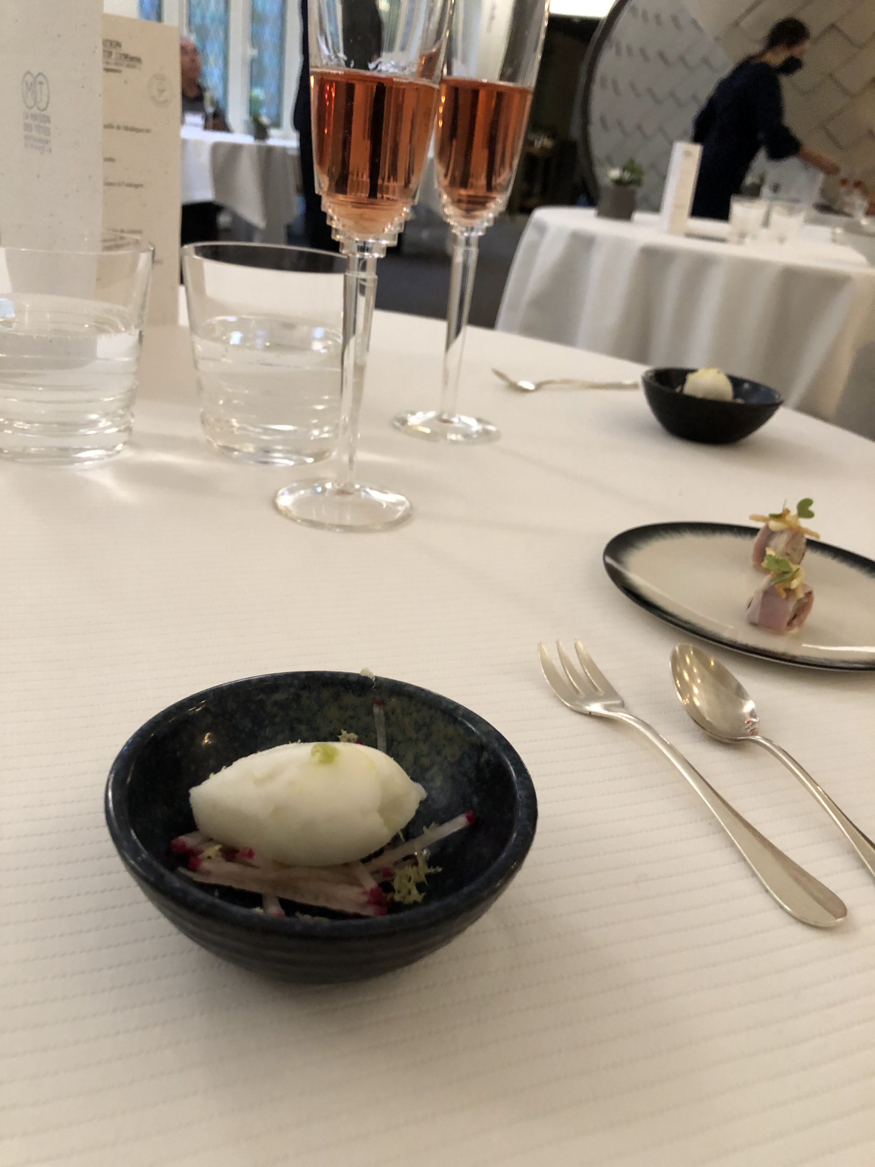 ce restaurant est magique - au premier abord très épuré avec une décoration minimaliste , les plats s enchaînent avec comme maitre mots des saveurs et goûts surprenant et délicieusement bon. Tout était parfait - vraiment une expérience culinaire que je recommande vivement et bien au delà d une étoile a mon avis. Un restaurant qui vaut vraiment le détour - Bravo Mr girardin