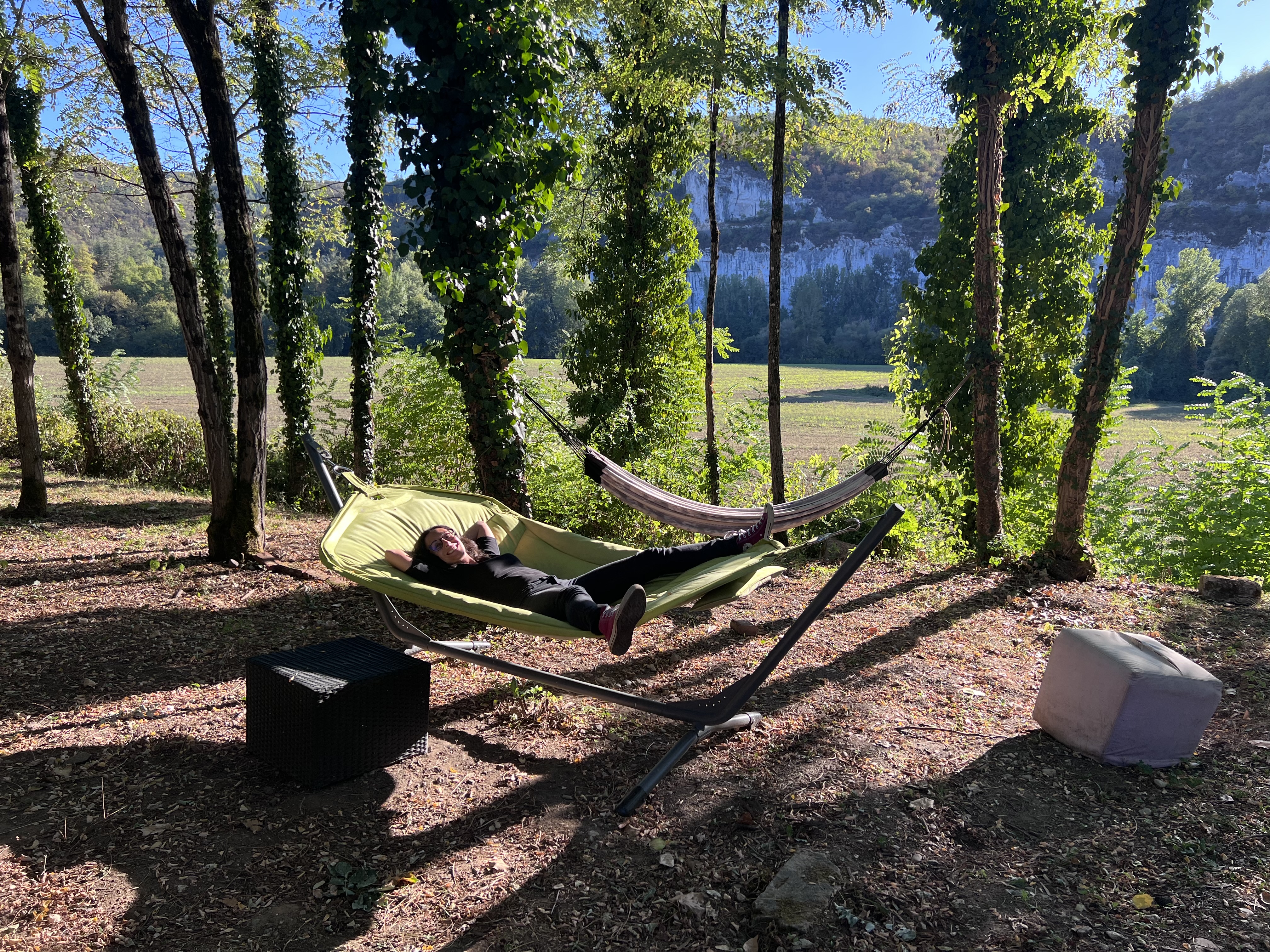 Un peut atypique, baba cool, lieu surprenant et agréable. Le repas bon. Sommes ensuite allés par la voie de chemin de fer retrouver le chemin qui mène à Saint cirque lapopie.