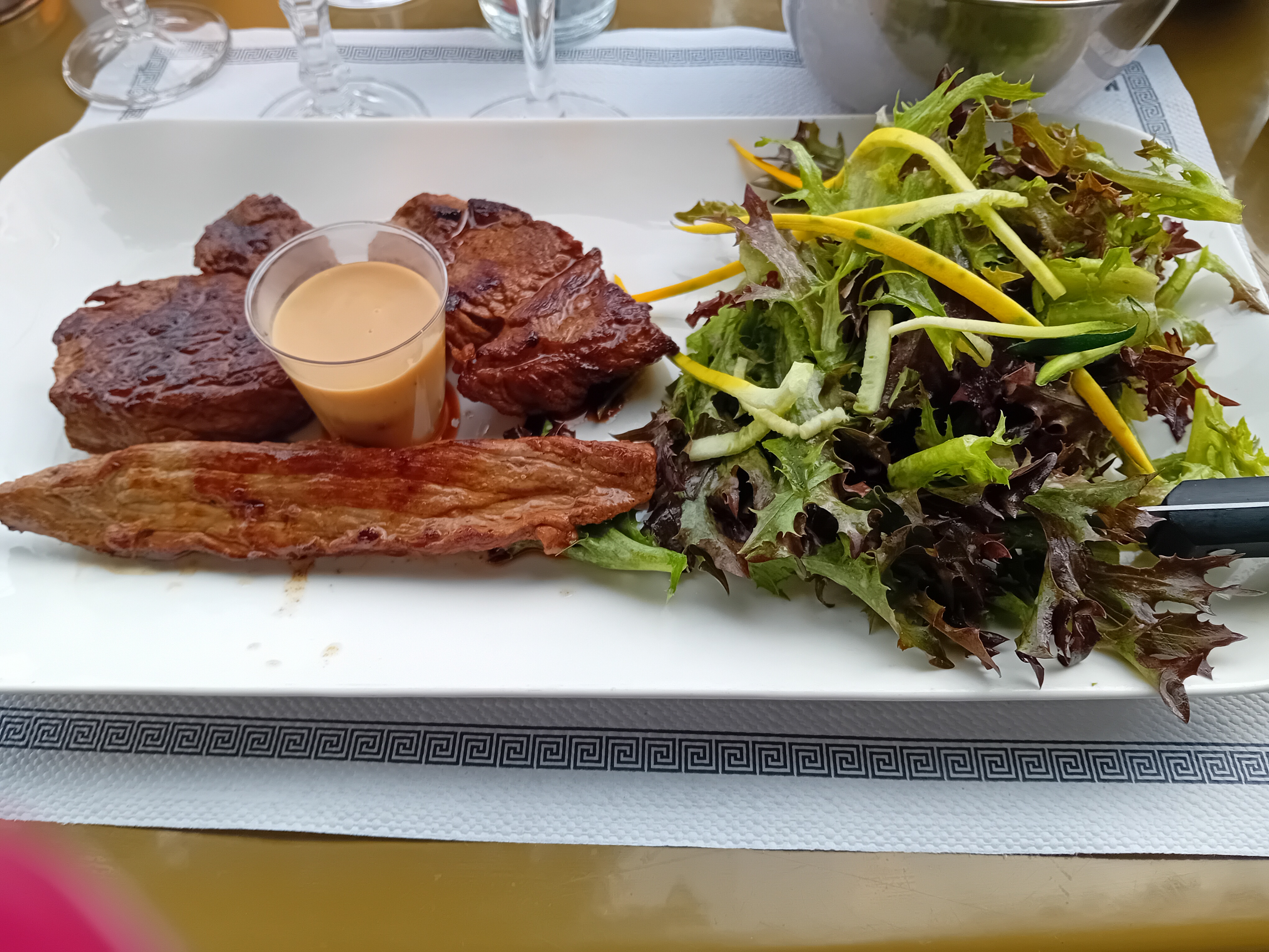 Très très bien , repas de l'apéro au dessert. Personnel très pro et très gentil. Je recommande les yeux fermés.