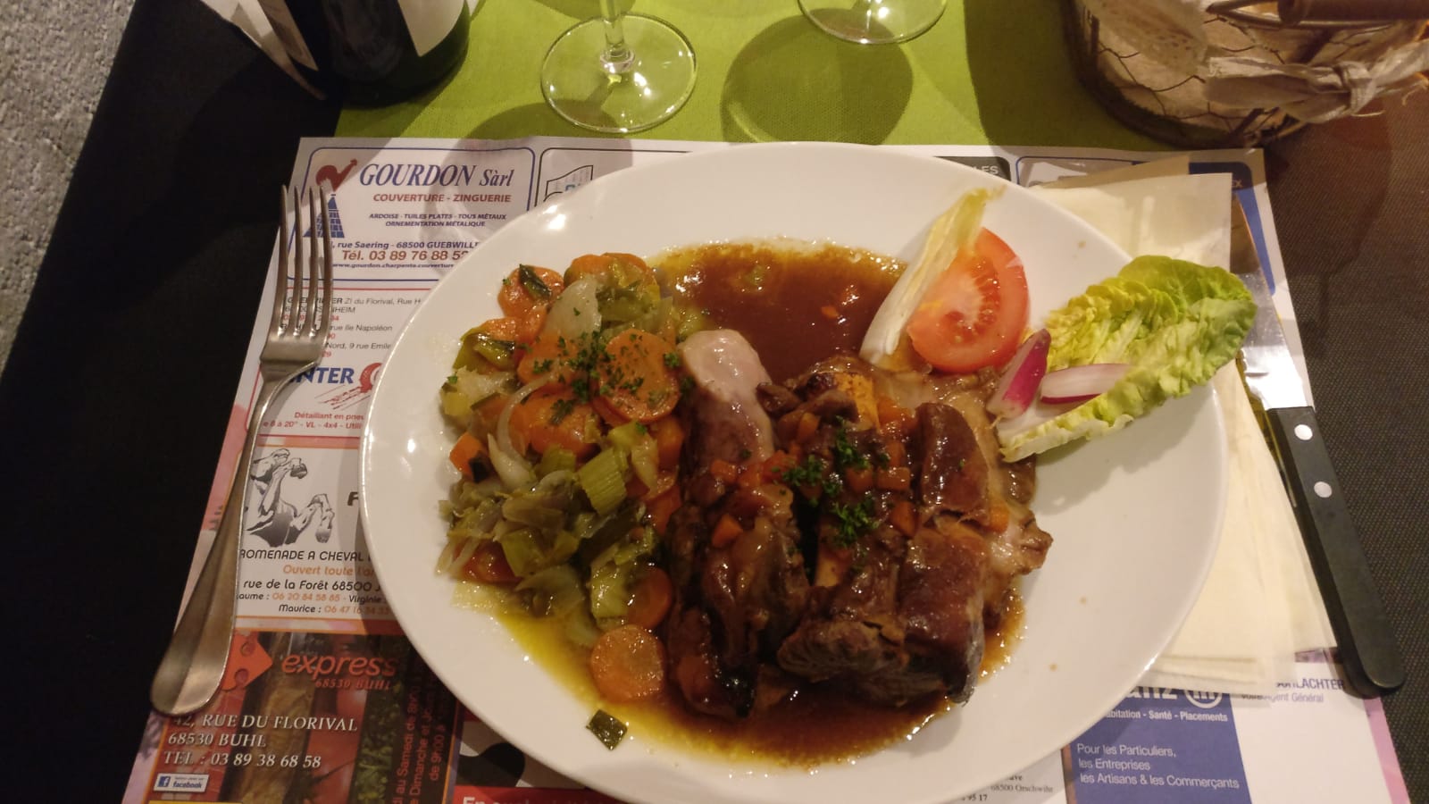 Experience = vente à emporter : Vendre 20€ une bouteille de rosé que mon camion pizza me vent à 8,50€ c'est juste une honte ! En plus de l'accueil bien pourri... Je me dis la pizza va être délicieuse 😊 Ben non, elle baigne dans l'huile et la pâte est cramée... Touristes, Passez votre chemin! Continuez sur Guebwiller où vous trouverez plusieurs restaurants délicieux !