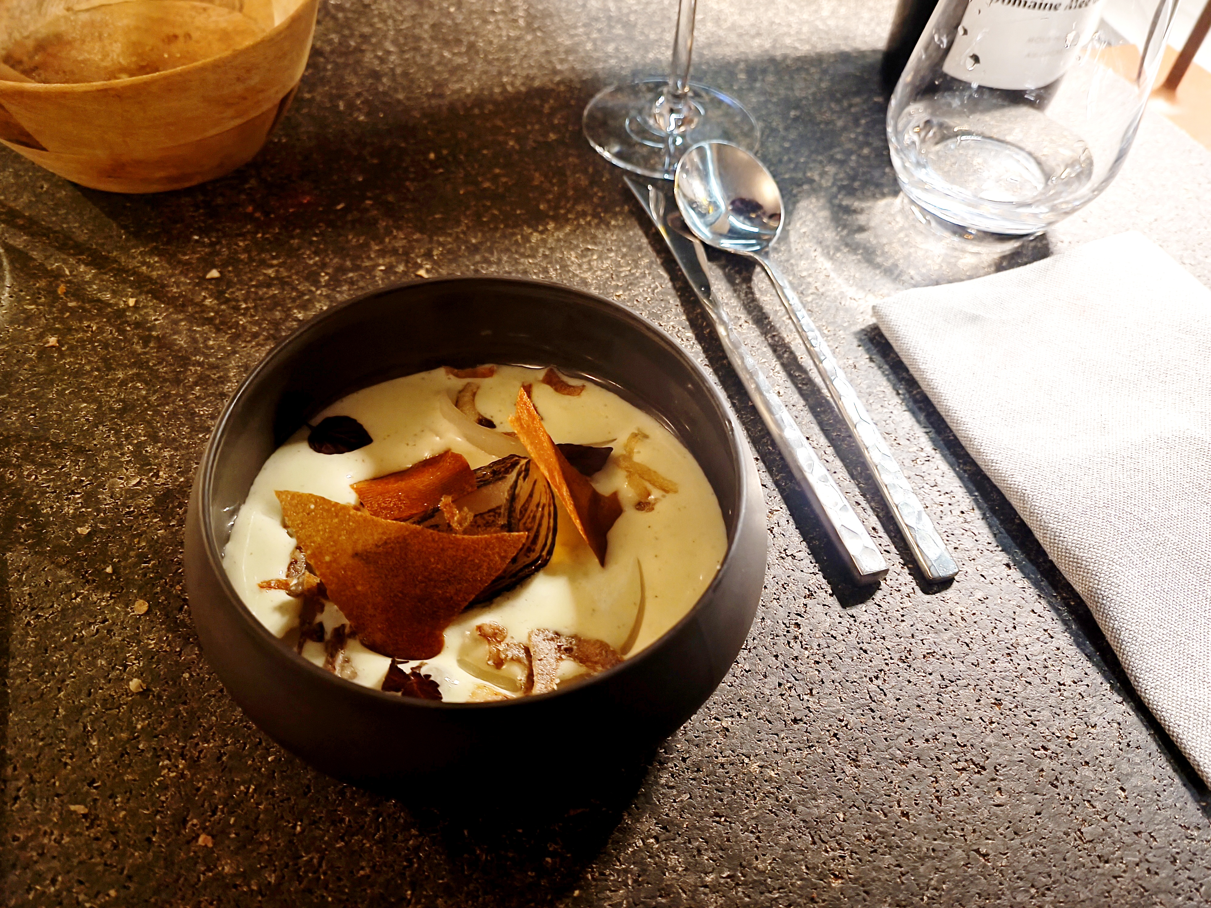 Une belle expérience, la cuisine est très inventive et de belles surprises, dommage que la salle ne soit pas à la hauteur, un peu triste en déco et surtout il y faisait super froid, mais c'est l'hiver