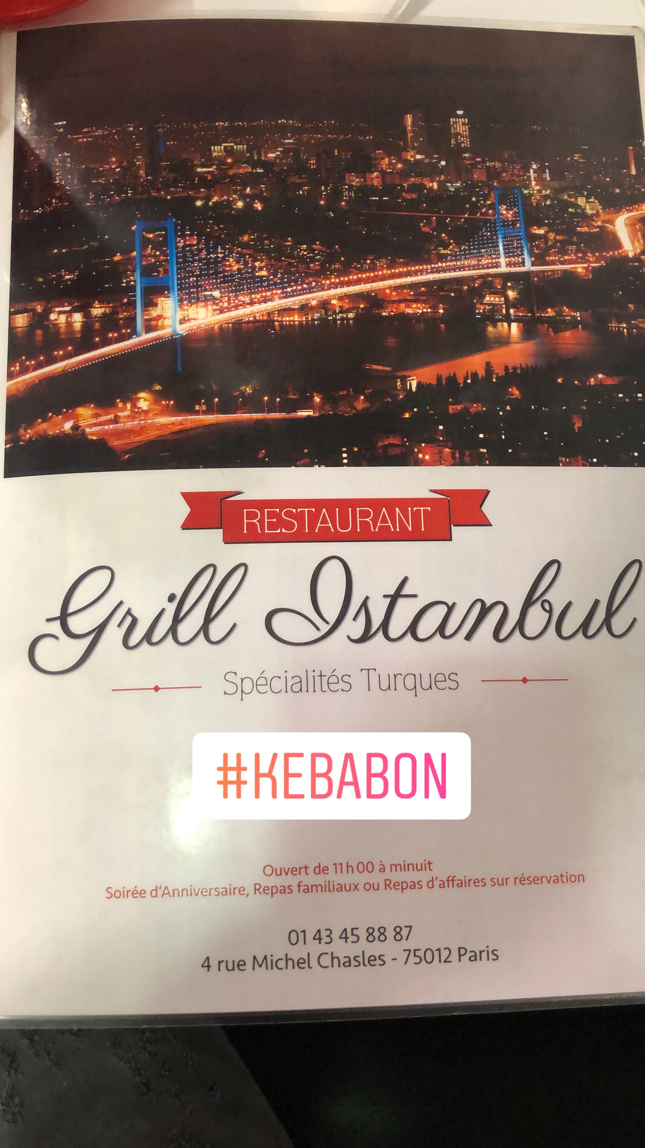 Voici toutes les informations sur le Restaurant turc Restaurant Grill Istanbul Kebab qui ce trouve au 4 Rue Michel Chasles, 75012 Paris (75). Sur cette fiche vous trouverez les photos, l'adresse, les horaires d'ouverture, le numero de téléphone et les avis clients.Vous pouvez églement rédiger un avis si vous le souhaitez en bas de page.