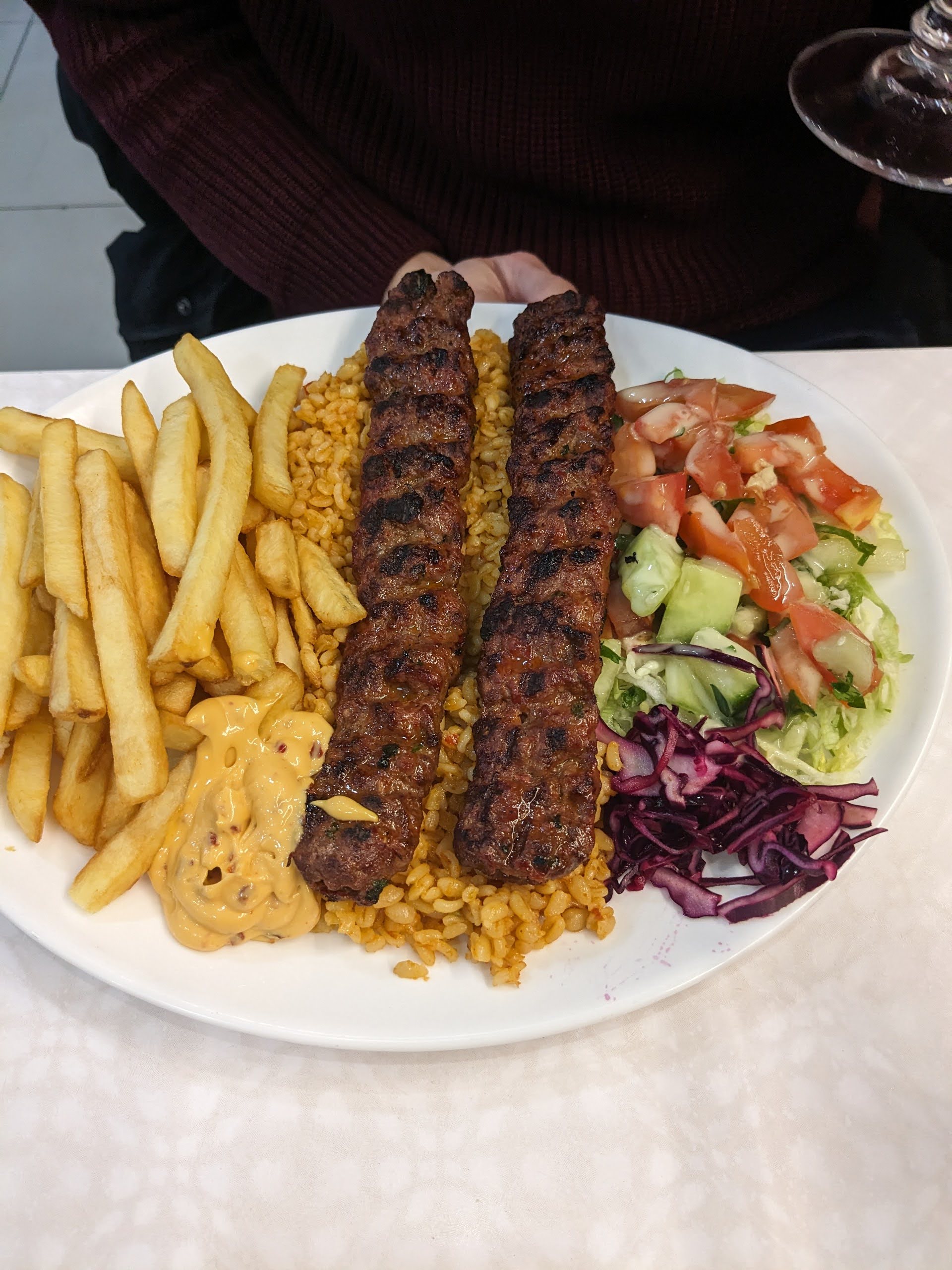 Bon restaurant De kebab plats bien servi. Et le thé est offert. Bon appétit les amies