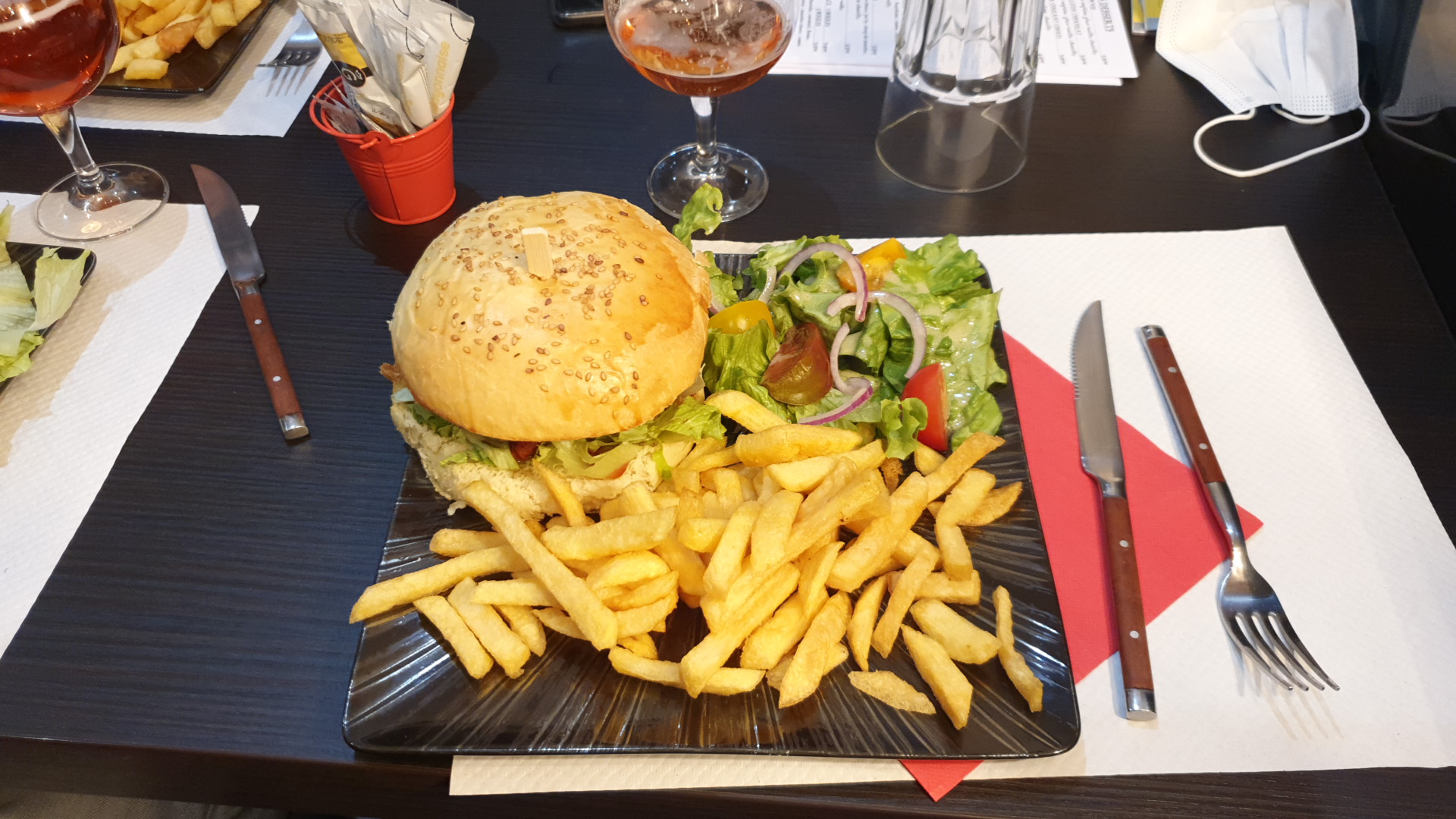 Nous avons commandé à emporter….Super Rapport qualité prix, burger et frite faits maison au top…personnel chaleureux !!! Je recommande vivement ce restaurant !!!