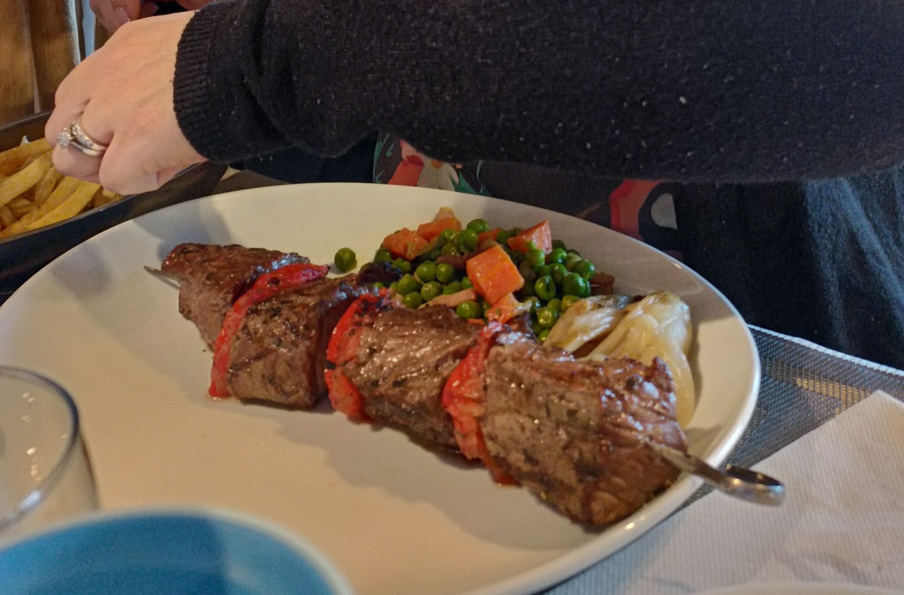 Toujours aussi bon .quel plaisir de déguster une viande tendre cuite au feu de bois. Un régal. Des légumes frais e saisons.