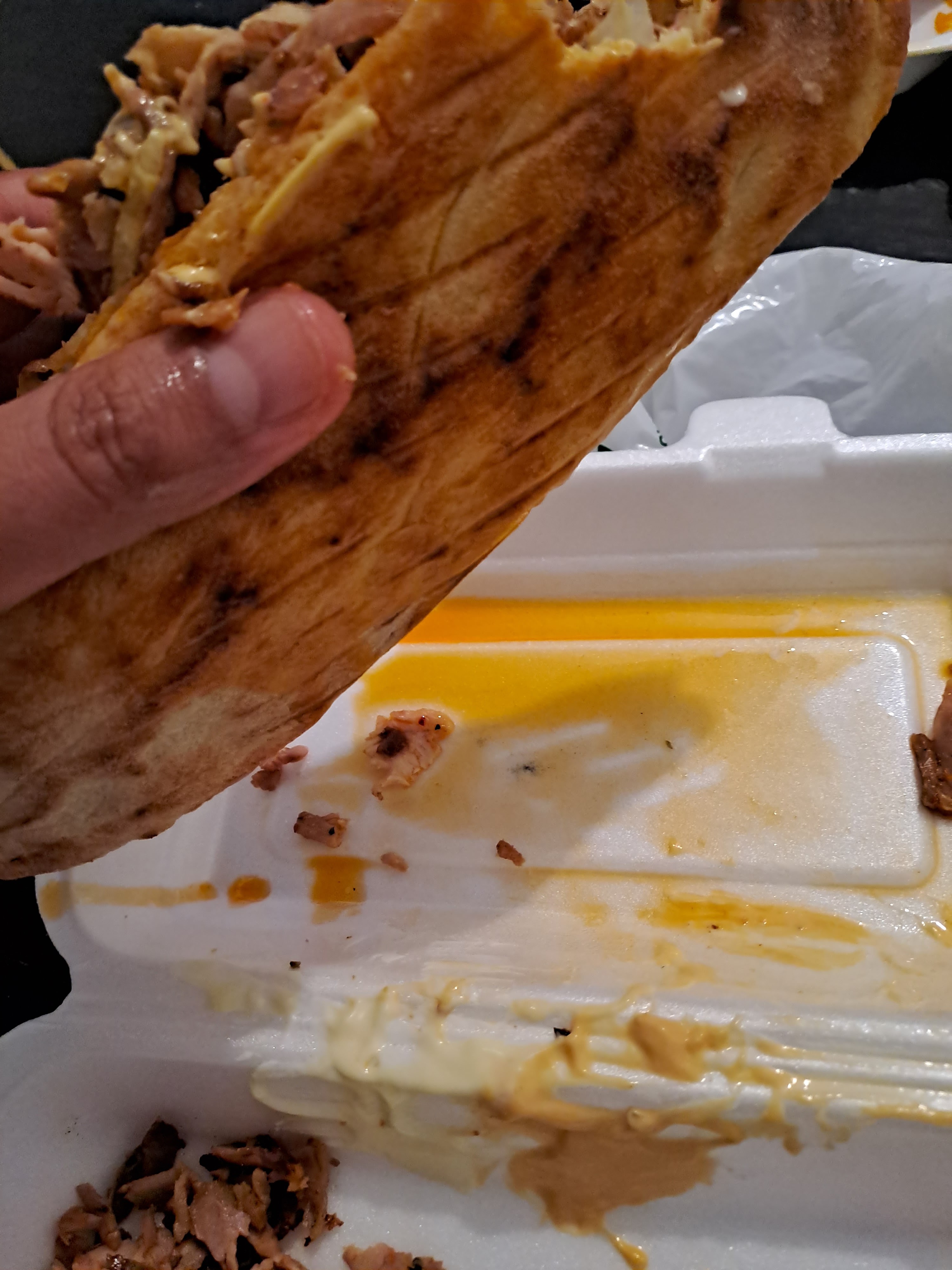 Tellement d'huile que ça a traversé la barquette et le sac à emporté à 2 doigts de tuer le siège de mon véhicule plus jamais 8.5 sandwich huileux trempé sans boisson et 1L d'huile dedans !