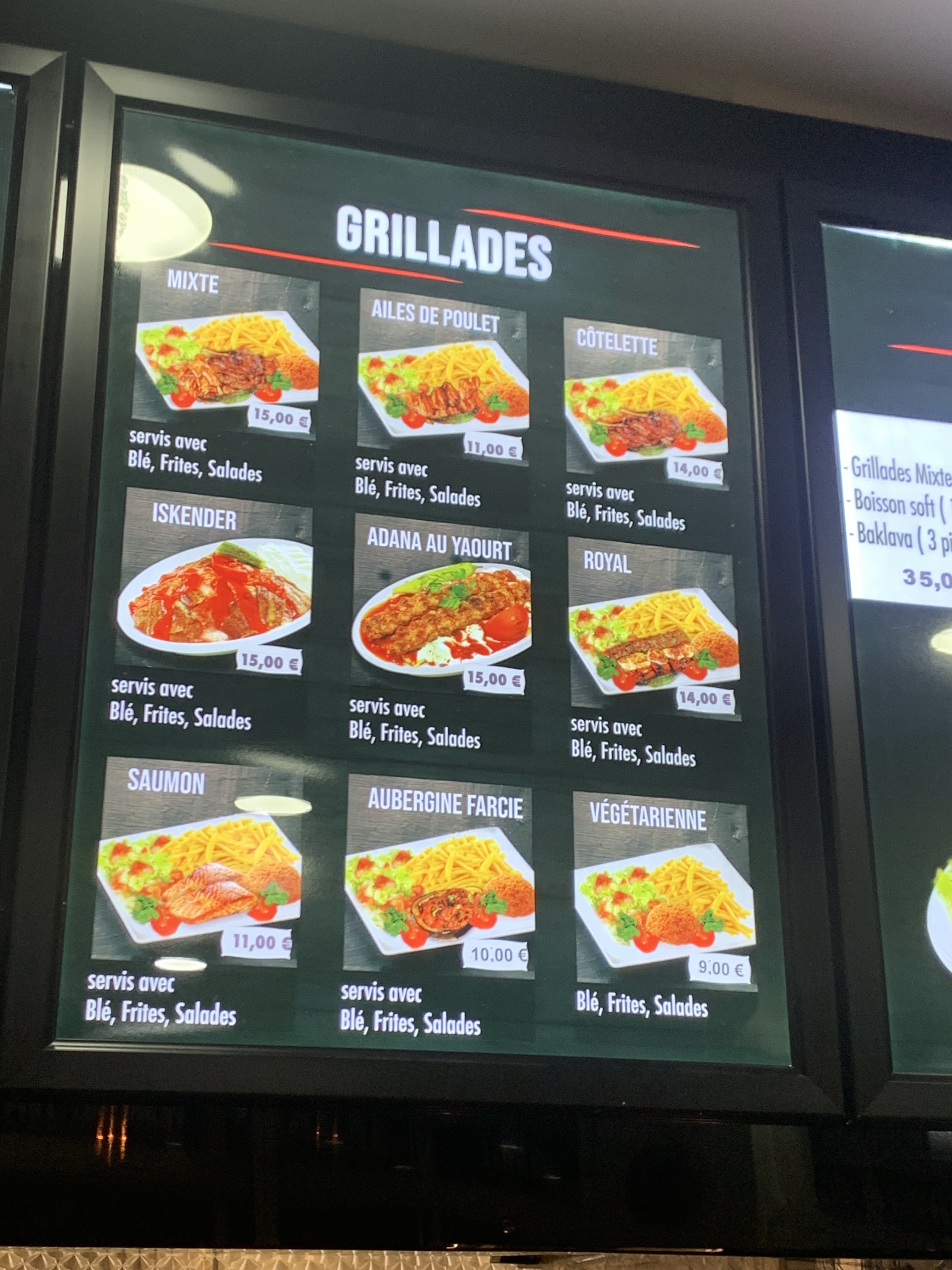 Agréablement surpris ont y étaient pas retourné depuis 3 ans car ce grec nous avait déçu et là depuis le changement de propriétaire forcé d'admettre que c'était excellent. Ils sont hyper généreux ils ont mis 2 Adana dans le sandwich de ma mère une première et très bonne surprise vraiment je recommande.