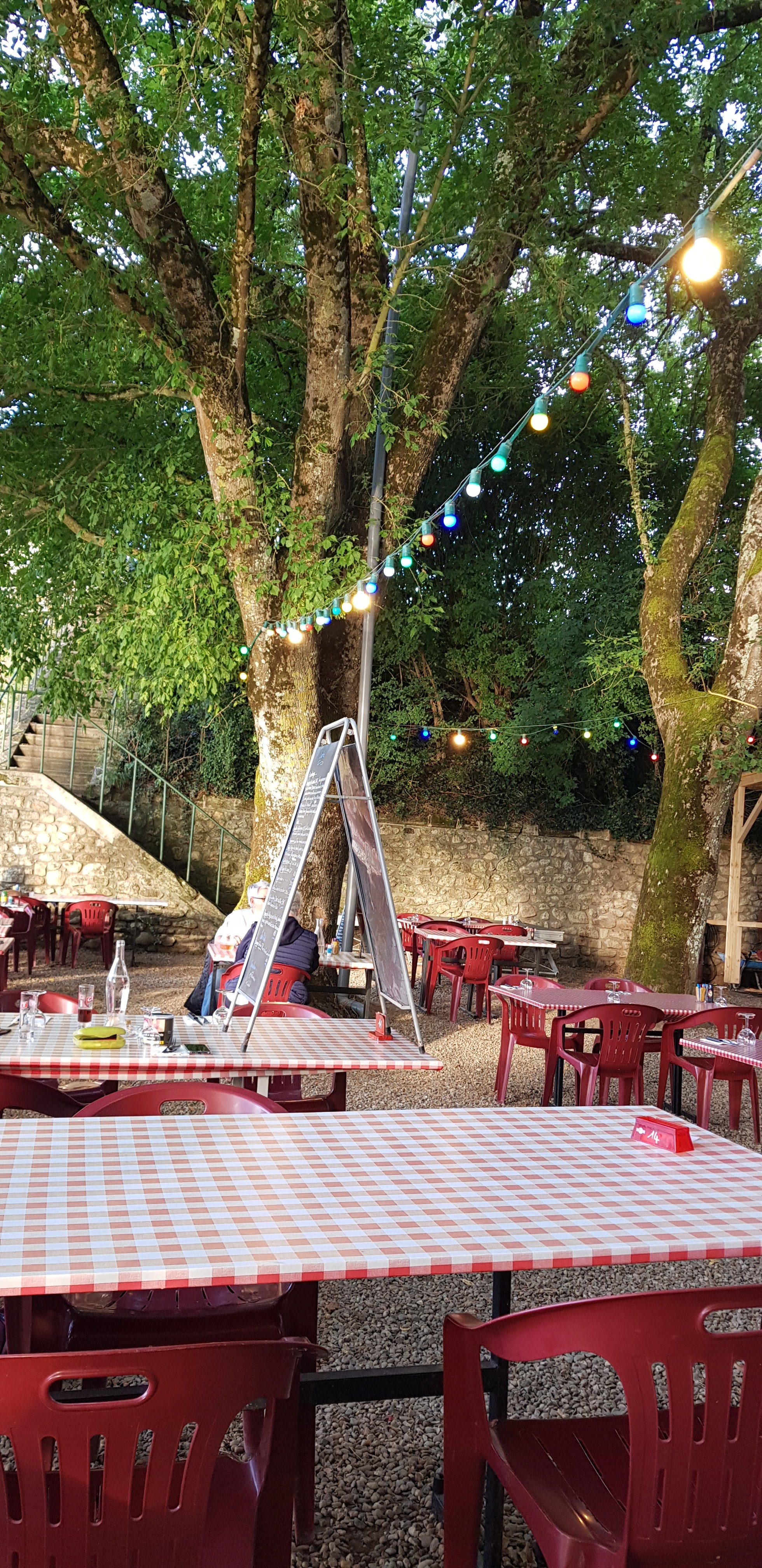 Un emplacement magnifique avec vue sur la jolie ville de Castillon. Au frais sous les Platanes, on se régale d'une cuisine maison généreuse et goûteuse et d'un accueil chaleureux.