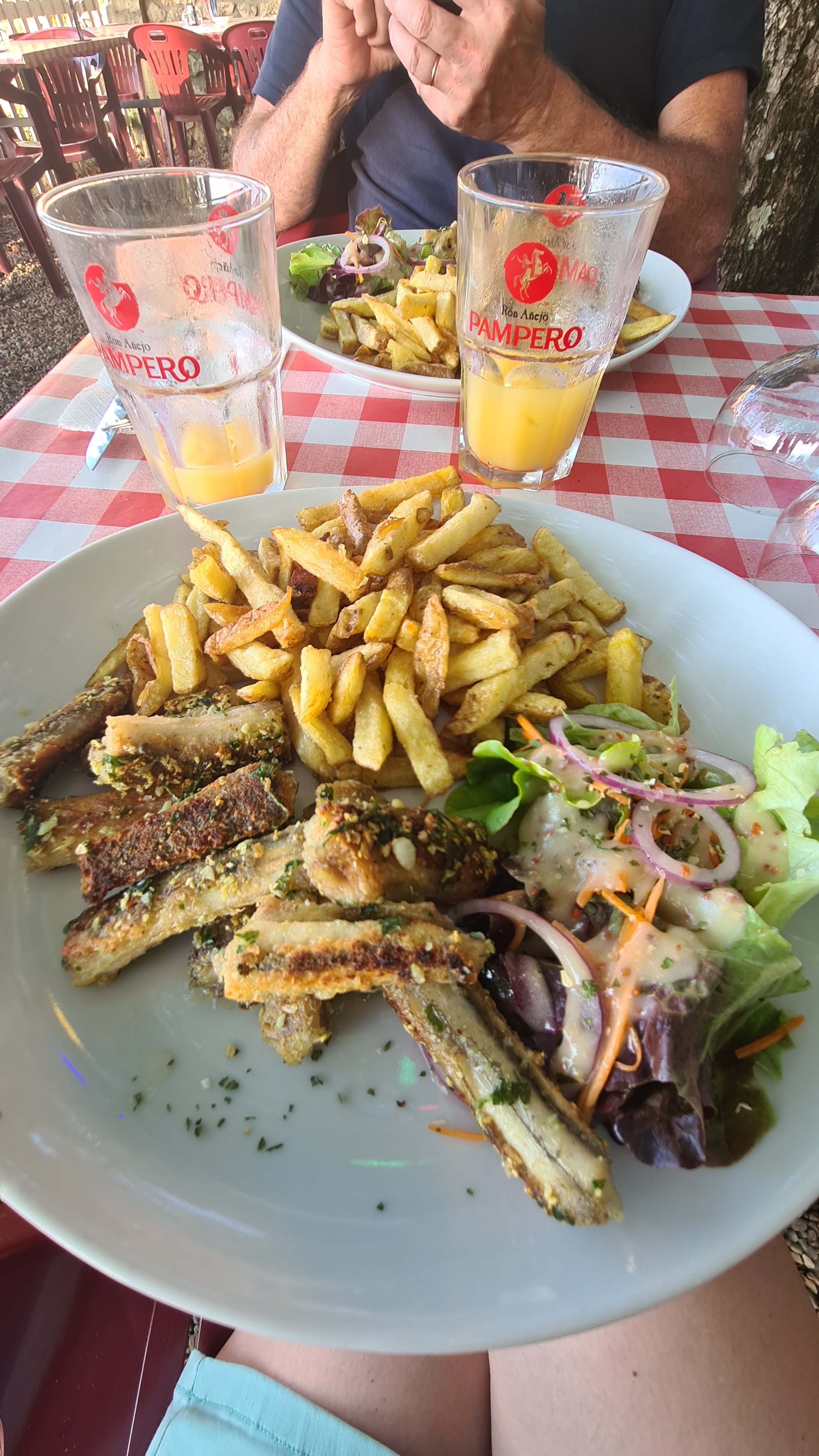 Nous avons apprécié l'accueil Le lieu est particulièrement agréable sous les arbres Les plats sont bons et copieux tels une guinguette L'addition est abordable