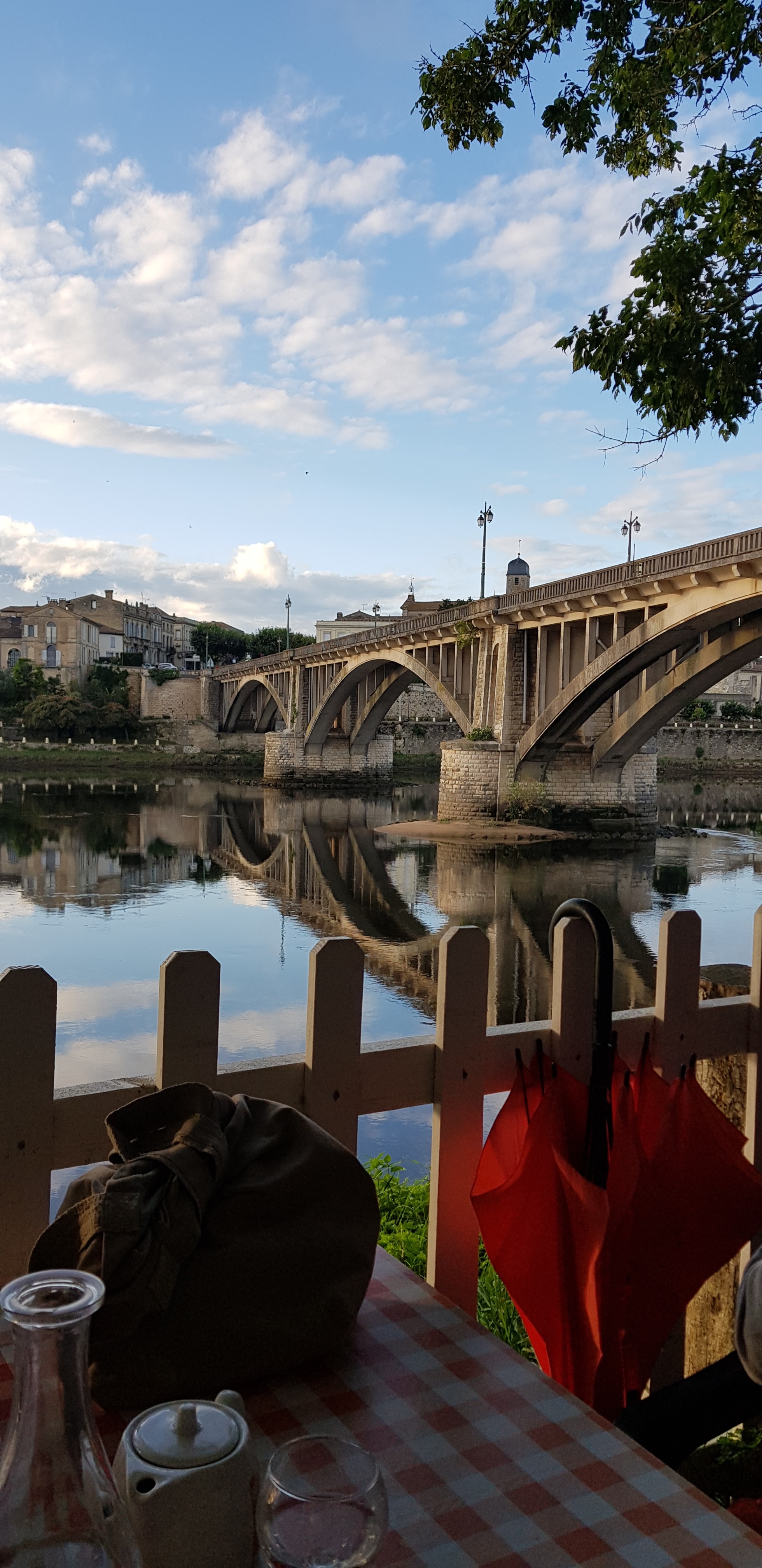Le cadre est magnifique, en plein air au bord de la Dordogne avec une vue magnifique sur le pont et la ville. L'accueil est agréable et convivial. Les plats sont très bons et copieux. Une belle adresse qui donne envie de revenir.