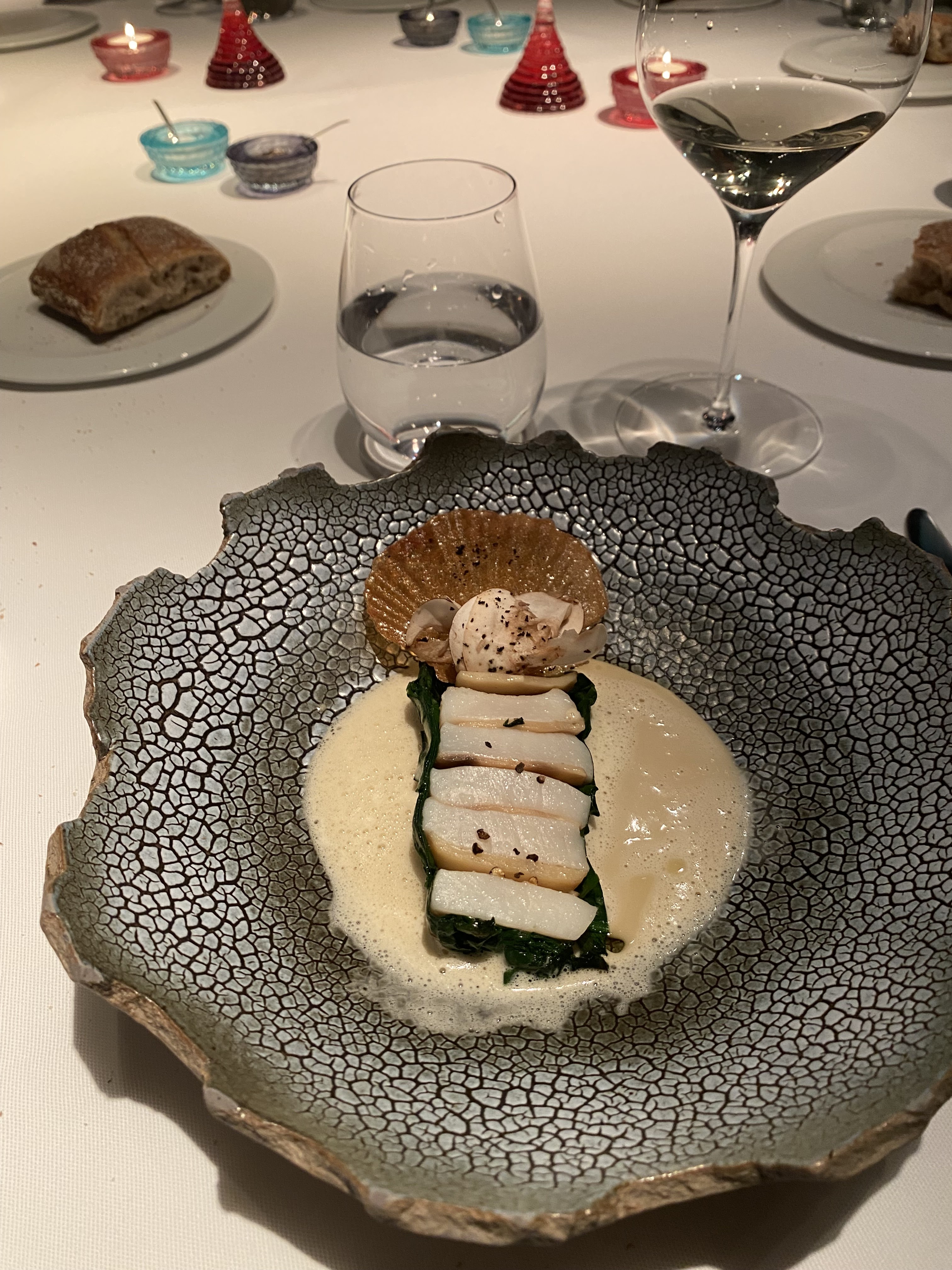 Sublime repas chez Guy Savoy, pour fêter la réouverture des restaurants en juin. Le grand menu dégustation tient toutes ses promesses avec quelques plats dressés ou finalisés à la table même, et l’incontournable « soupe d’artichaut à la truffe noire ». Monsieur Savoy était présent pour accueillir les clients et faire le tour de la salle pour s’assurer que tout se déroulait bien. Nous avons apprécié la photo qui nous a accordé en sa compagnie. 14 plats… en moins de 4heures chrono : couvre feu (à l’époque 23h!) oblige, tout en bénéficiant d’un service dîner attentionné et aux petits soins.